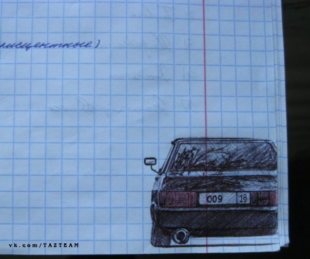 ![Машины ручкой в тетради]()