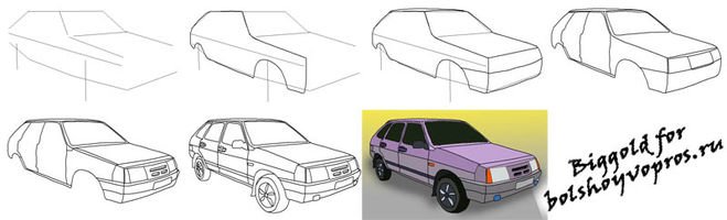 ![ВАЗ 2107 рисунок сбоку поэтапно карандашом]()