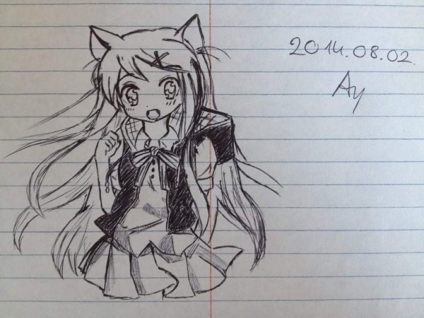 ![Аниме карандашом в тетради]()