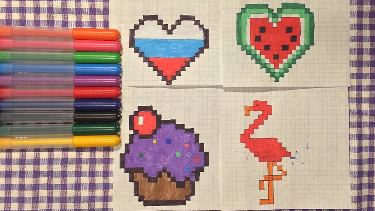 Рисунки в клеточку в блокноте