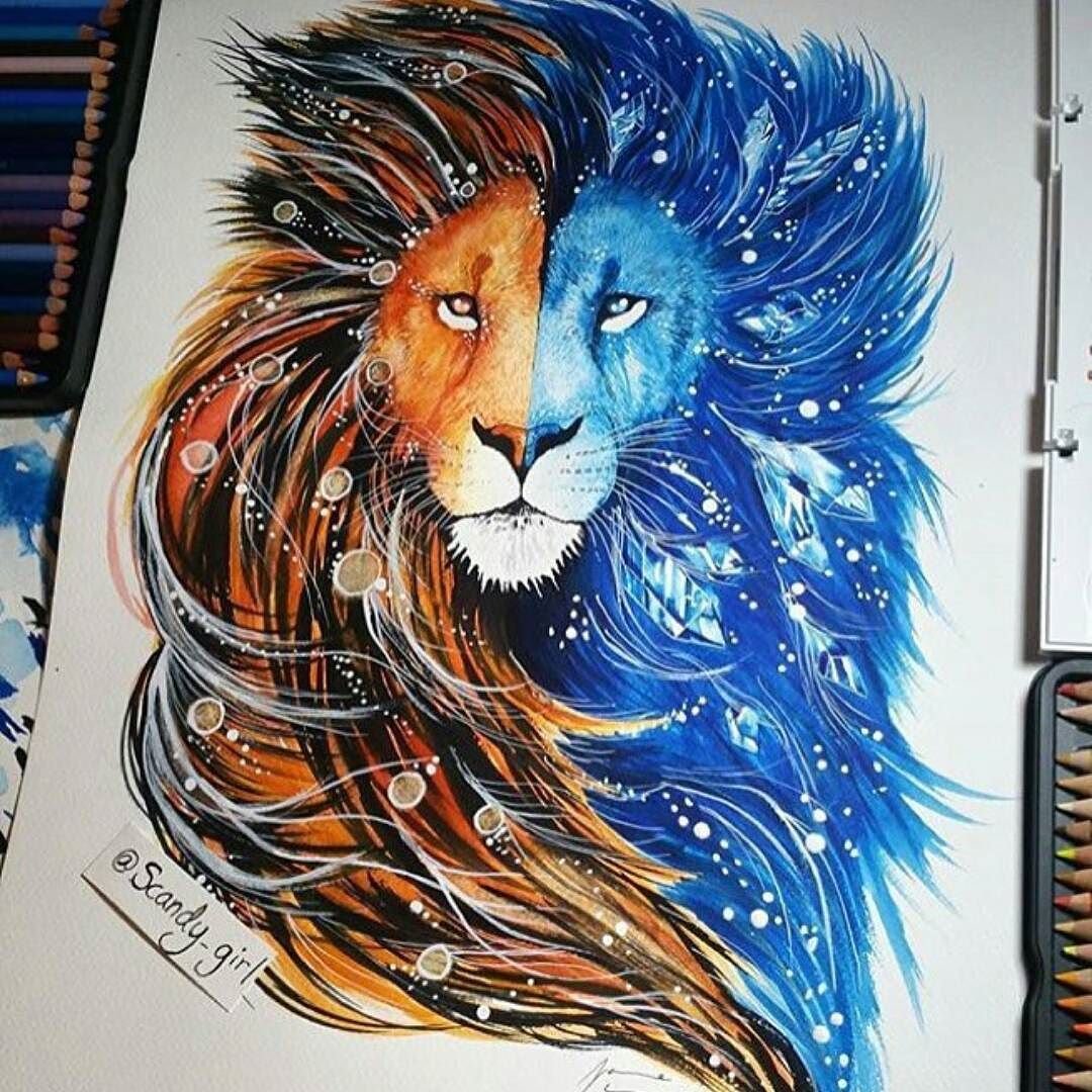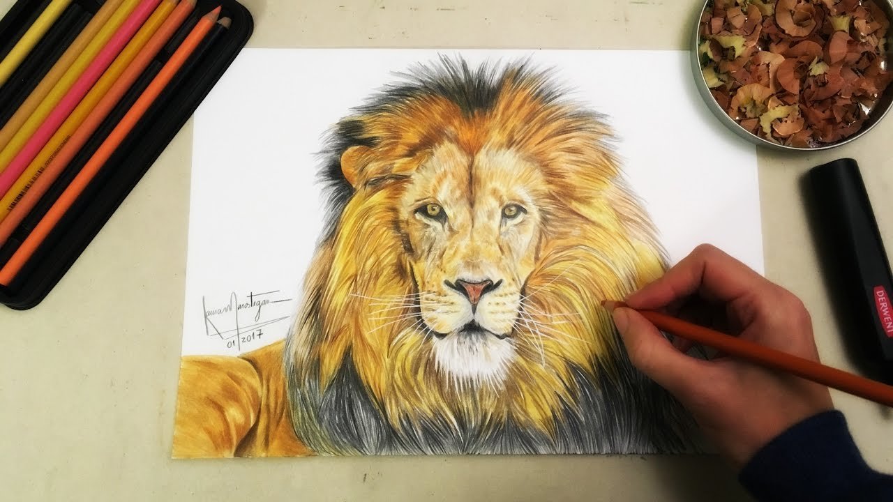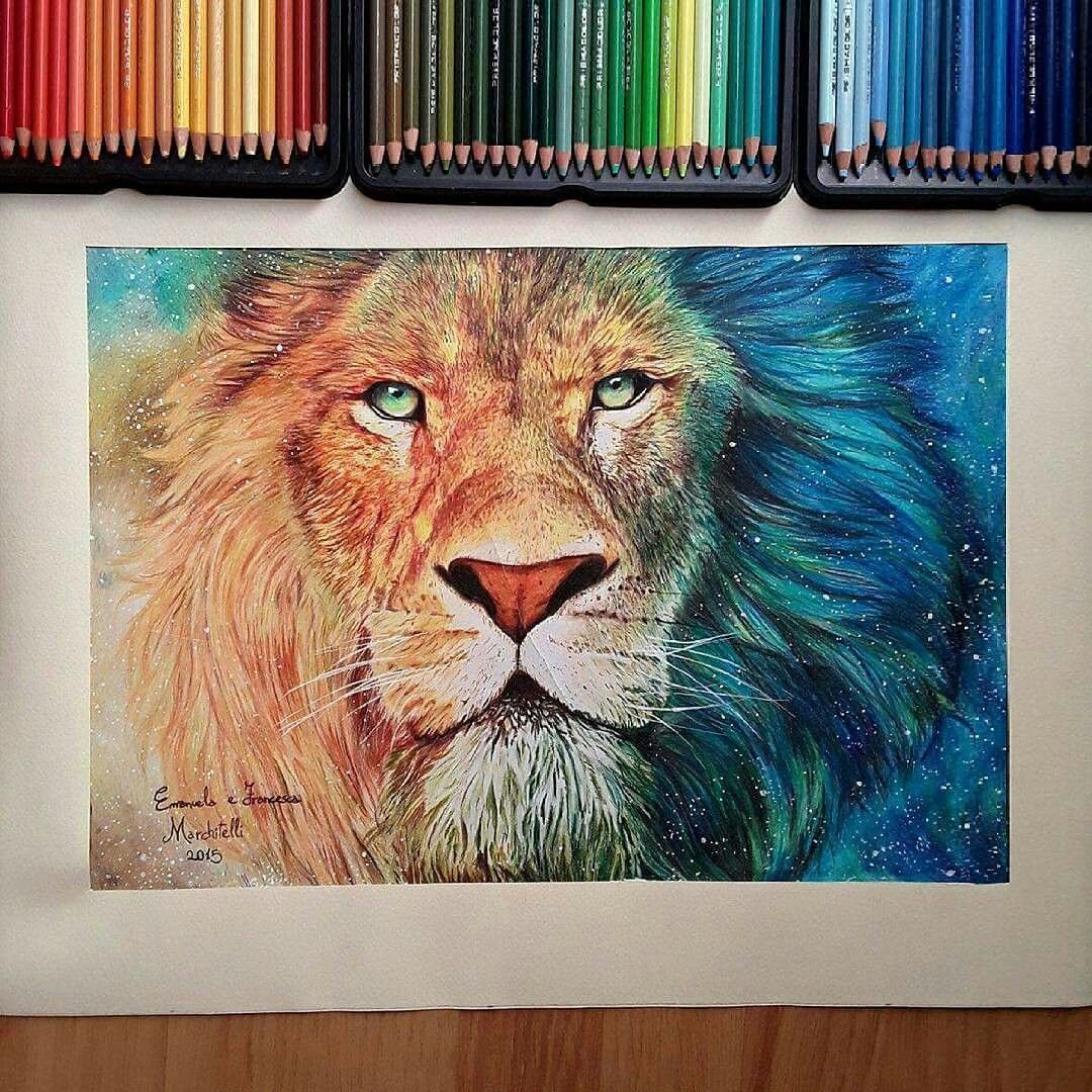 Лев цветными карандашами