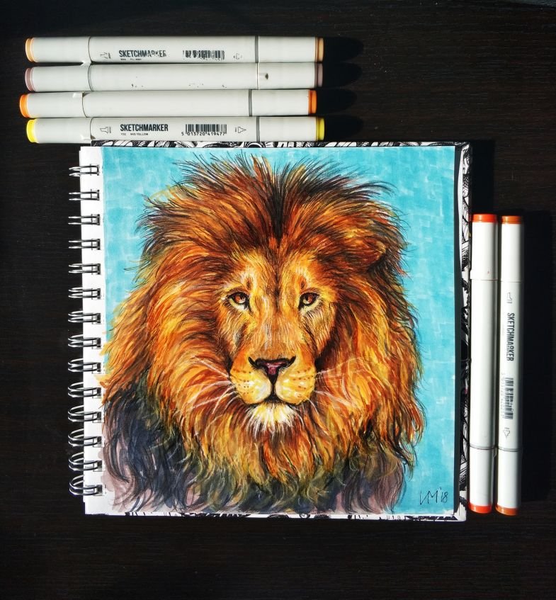 Лев маркерами
