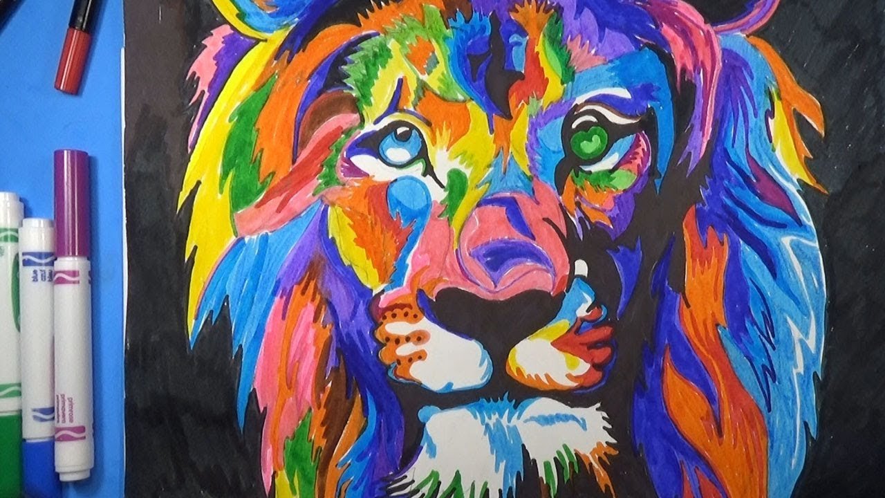 Цветной Лев маркерами