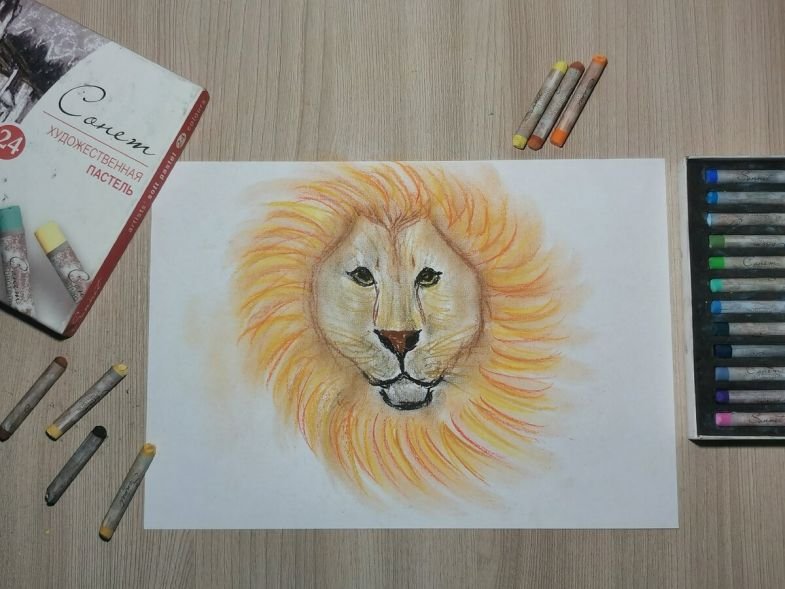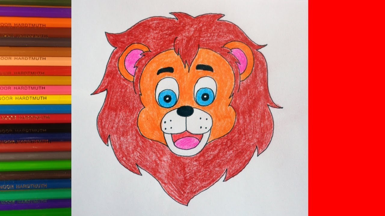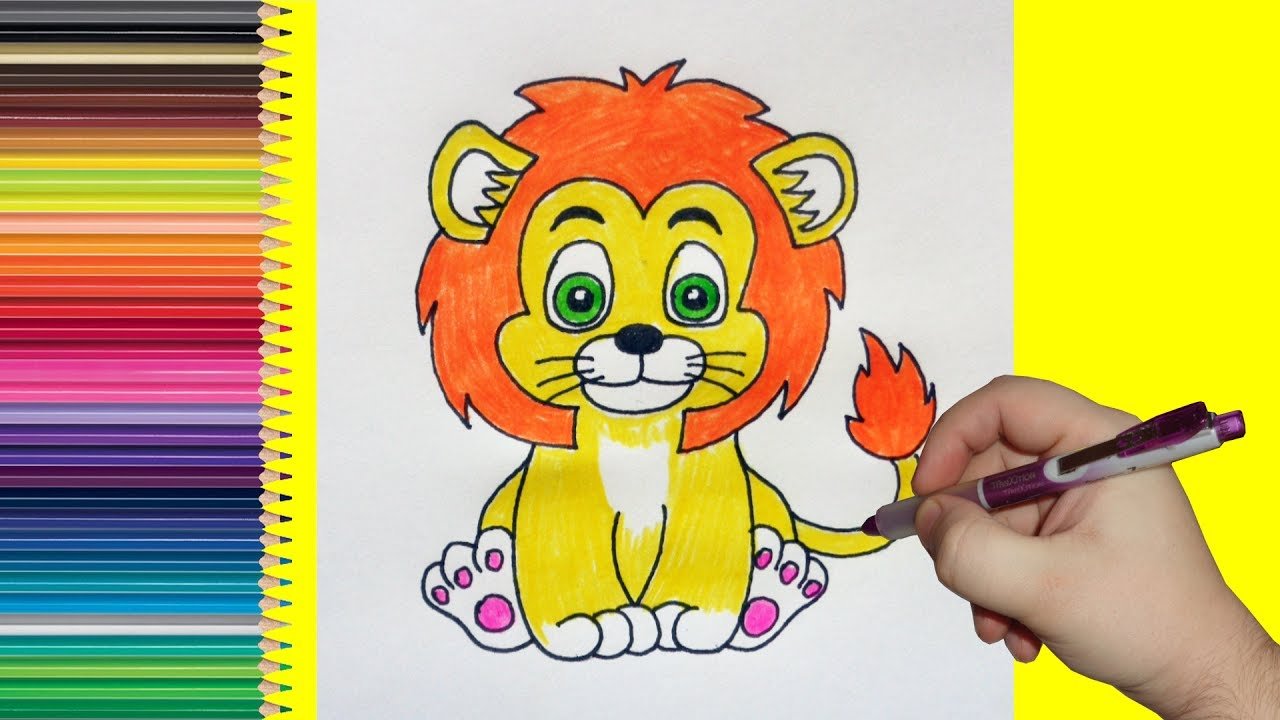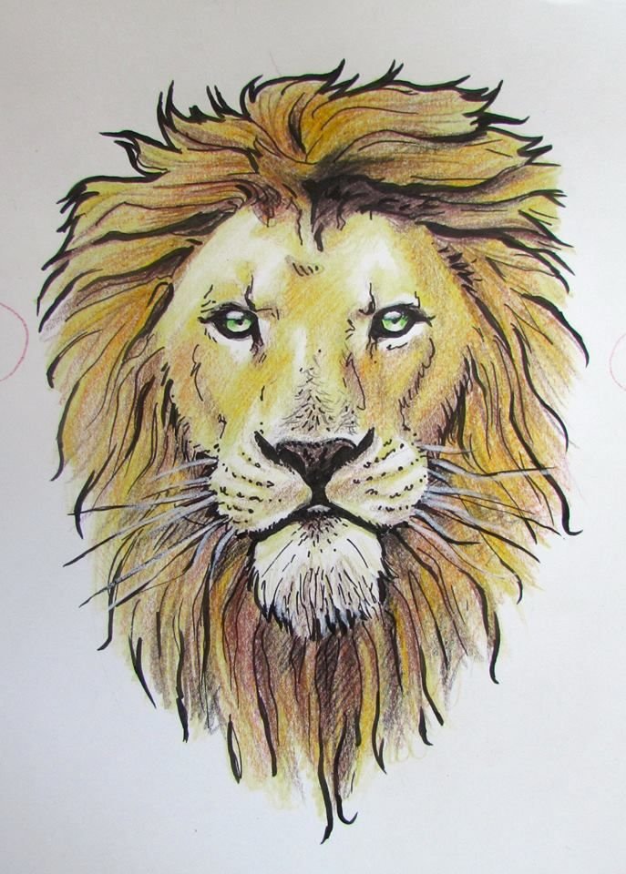 Лев рисунок карандашом цветной