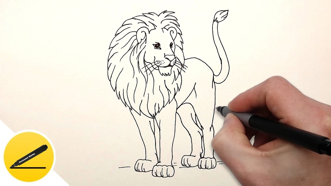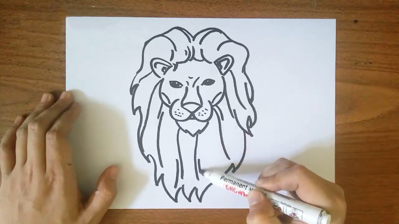 ![Лев черным маркером]()