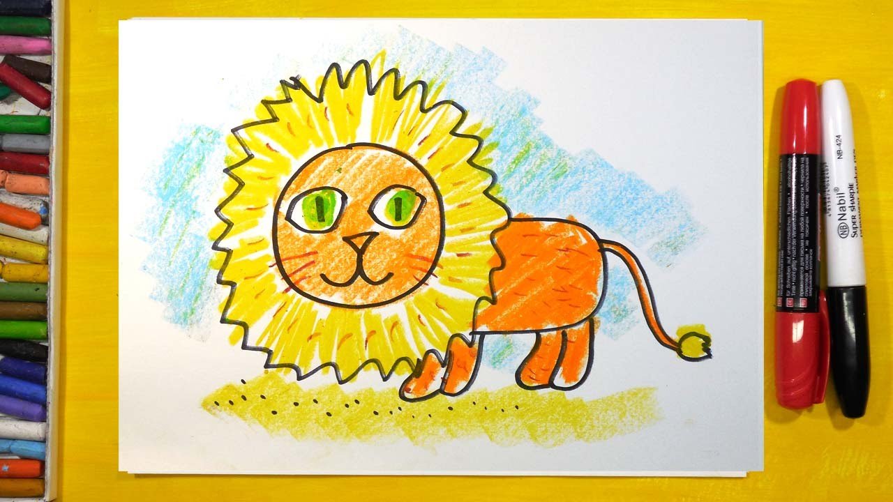 ![Детские рисунки Льва фломастером]()