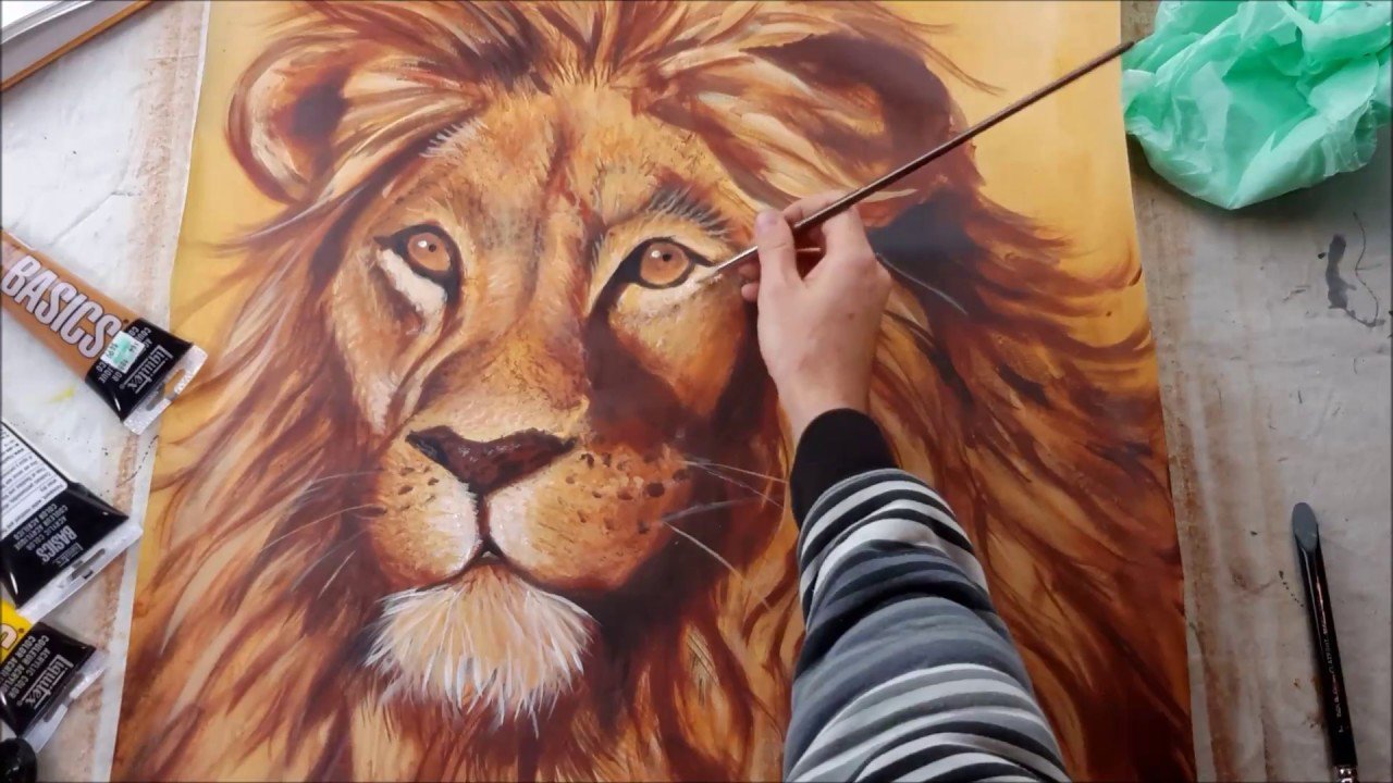 ![Лев гуашью]()