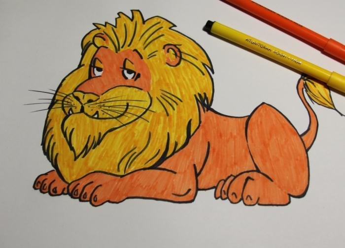 ![Цветной Лев маркерами]()