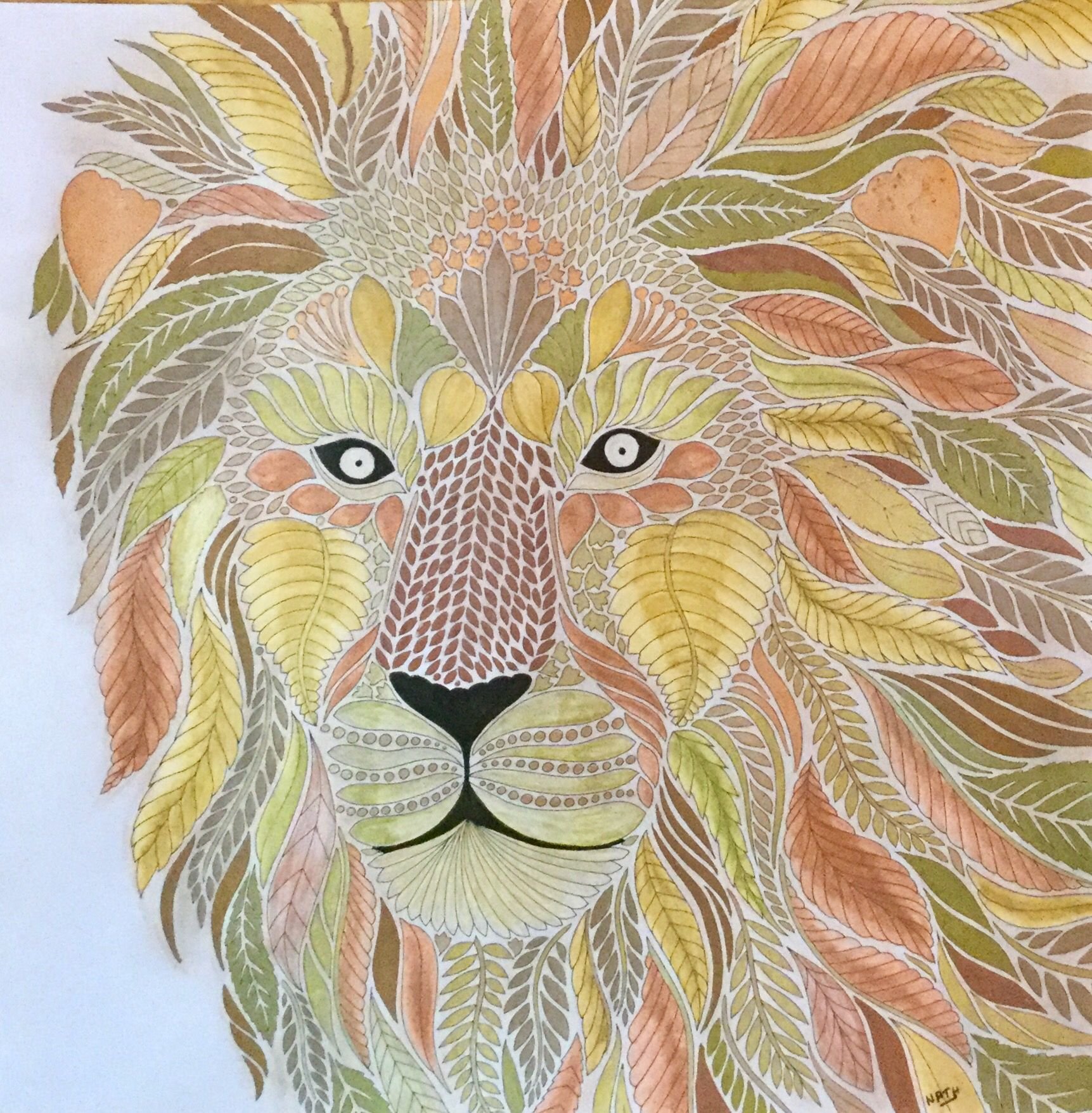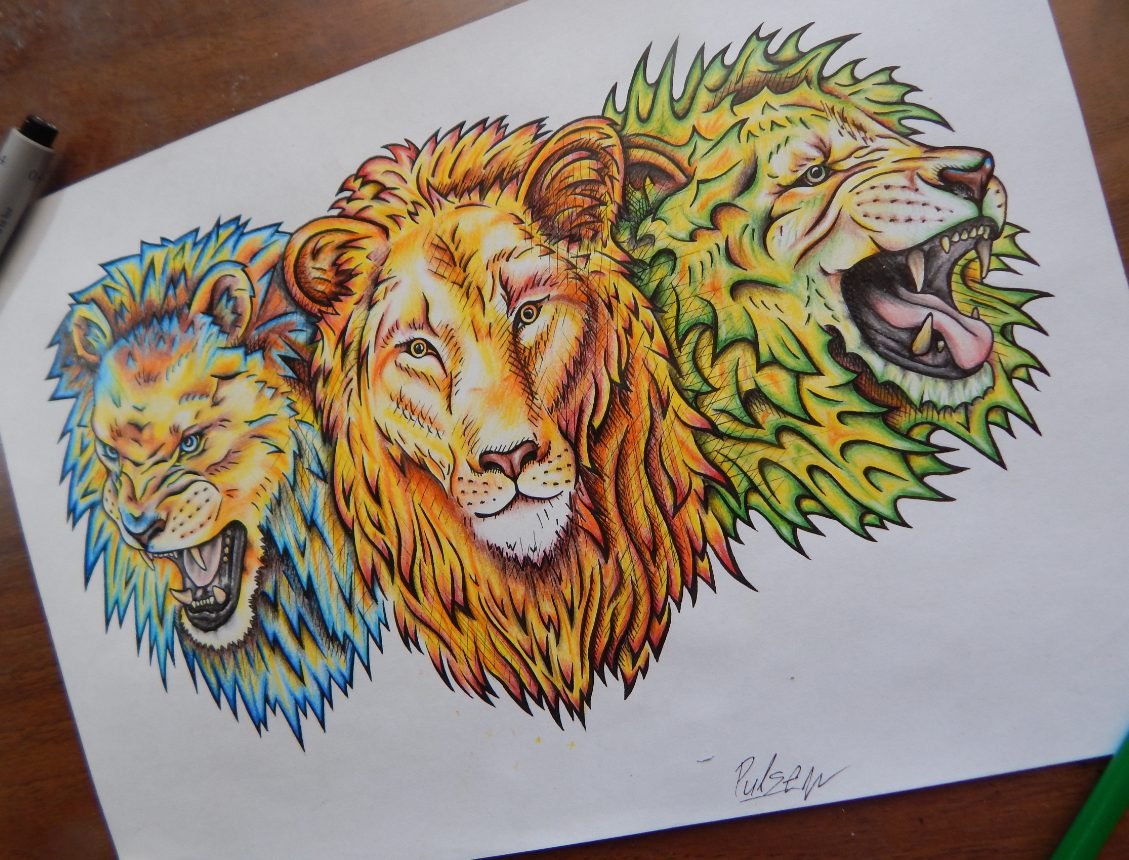 ![Лев цветными карандашами]()