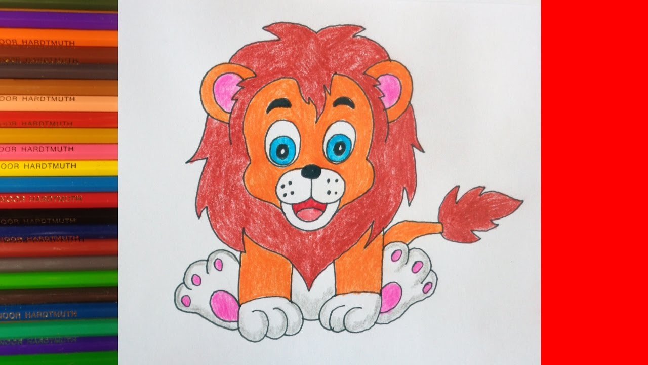 ![Лев рисунок карандашом цветной]()