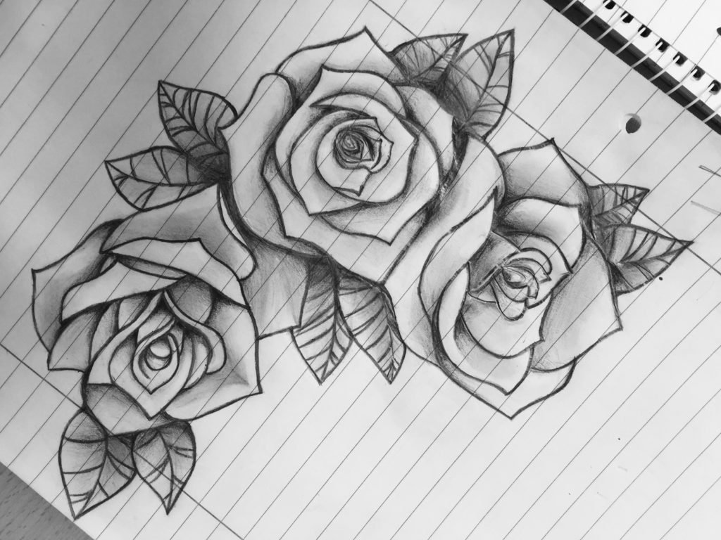 Скетчинг розы рисунок карандашом