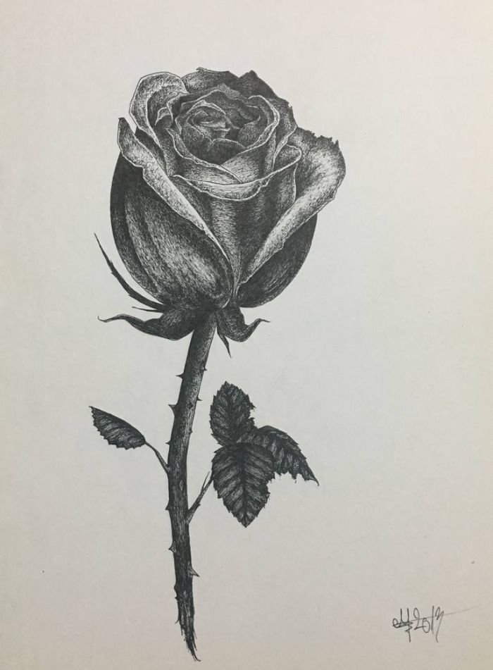 Роза черной ручкой