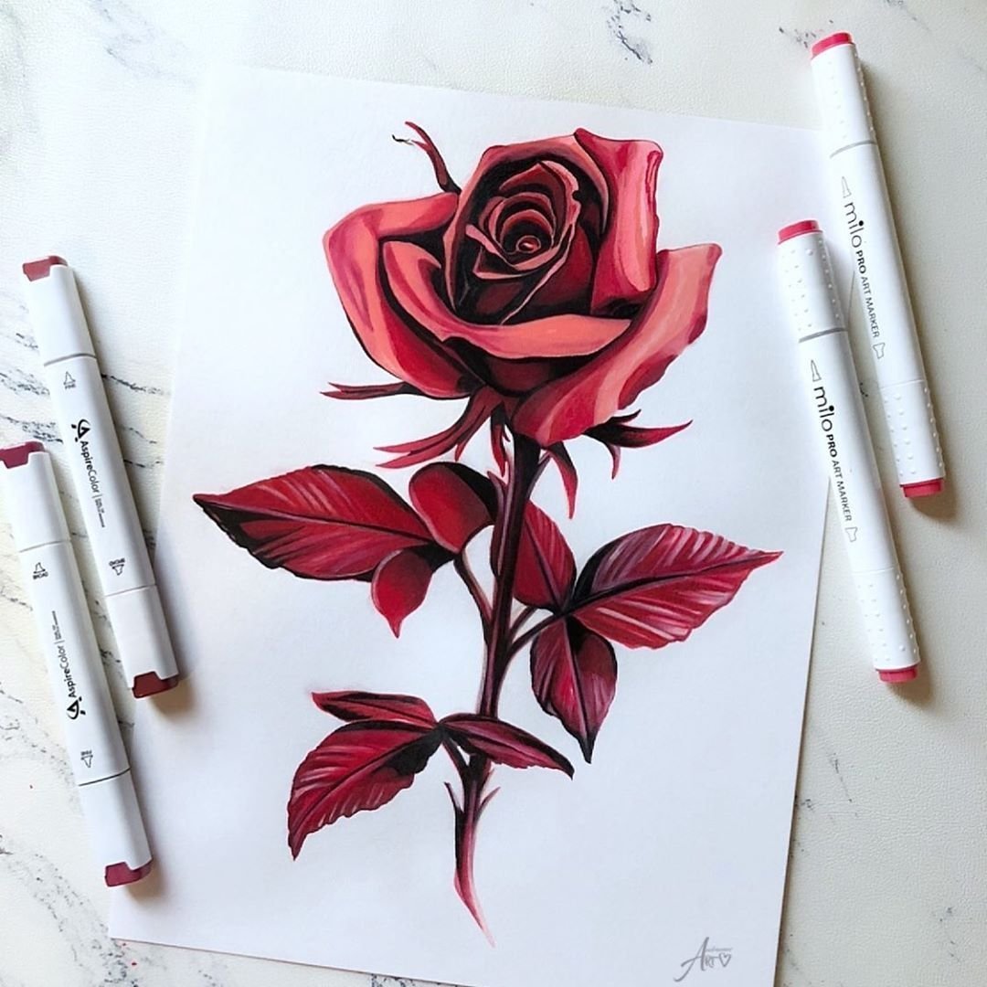 ![Розы ручкой красной]()
