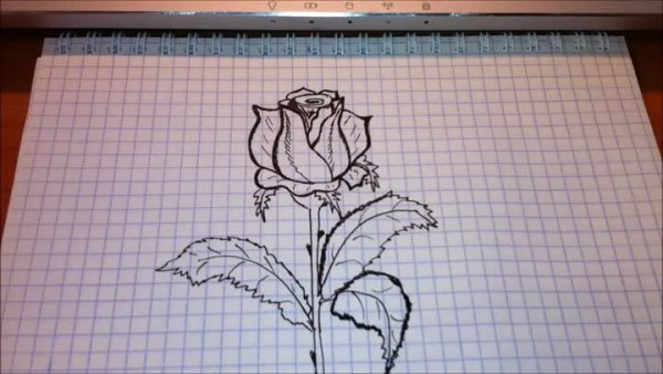 Эскиз розы карандашом в тетради