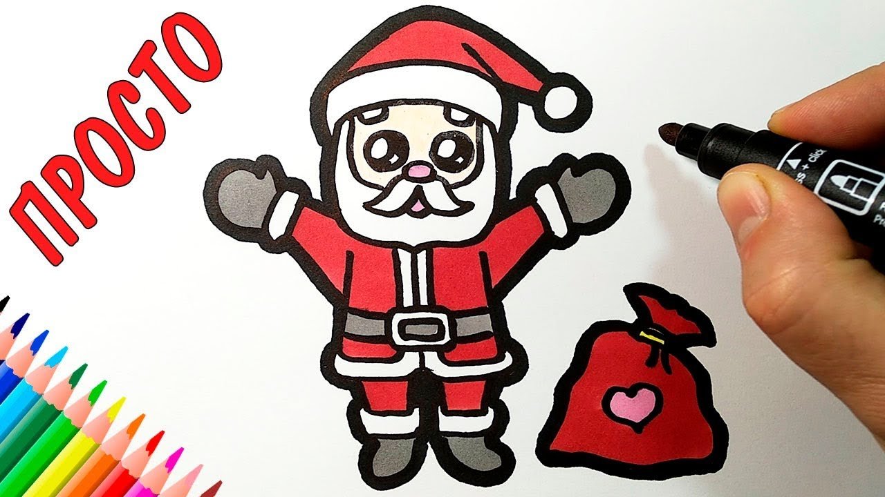 Санта Клаус рисунок легкий