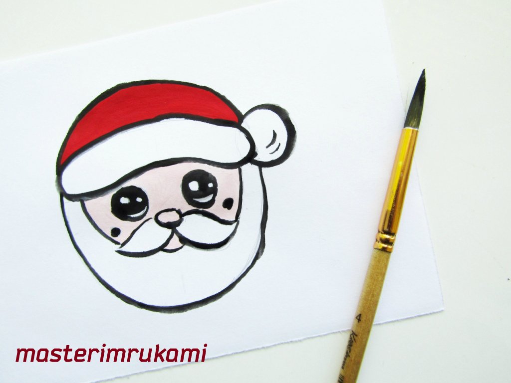 ![Рисуем Деда Мороза ручкой]()