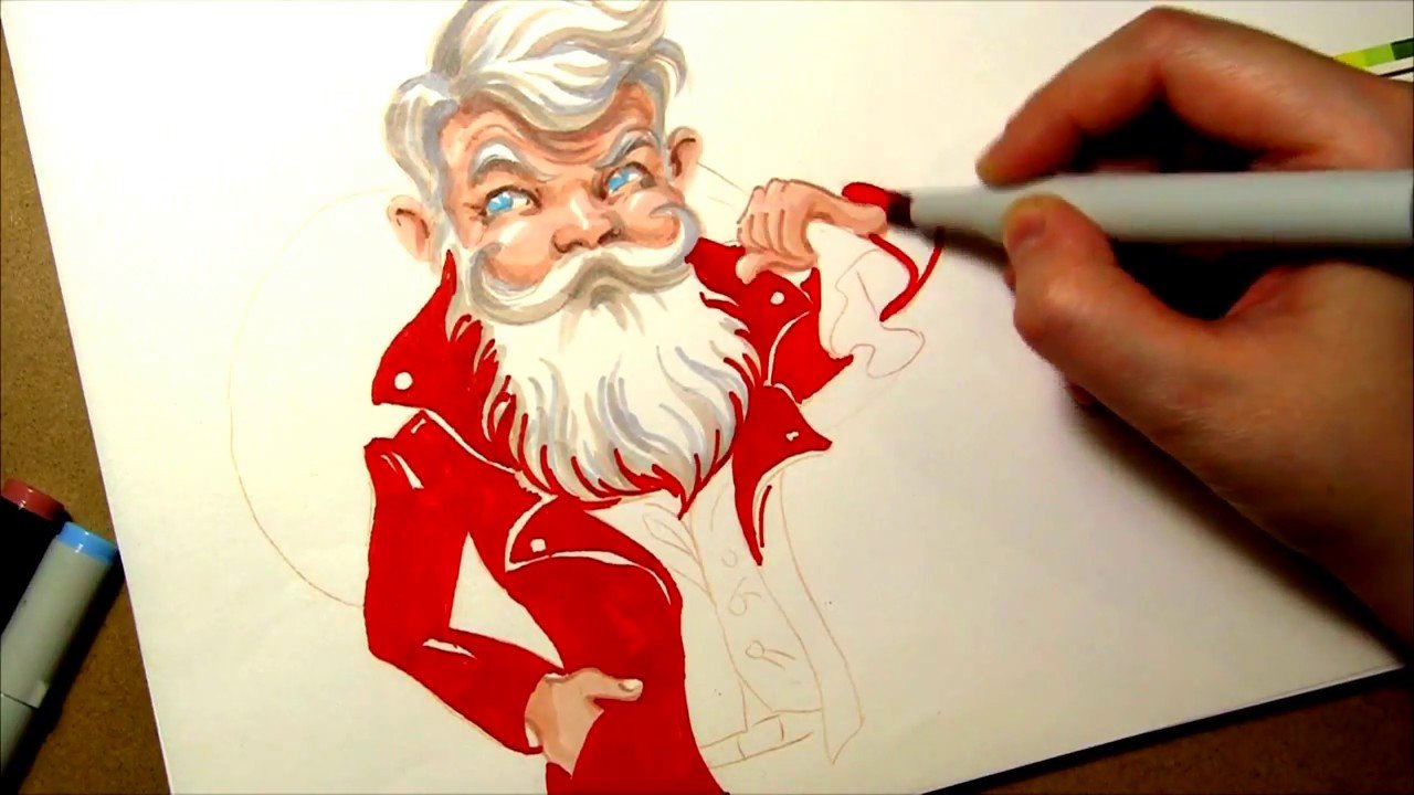 Дед Мороз рисунок маркерами