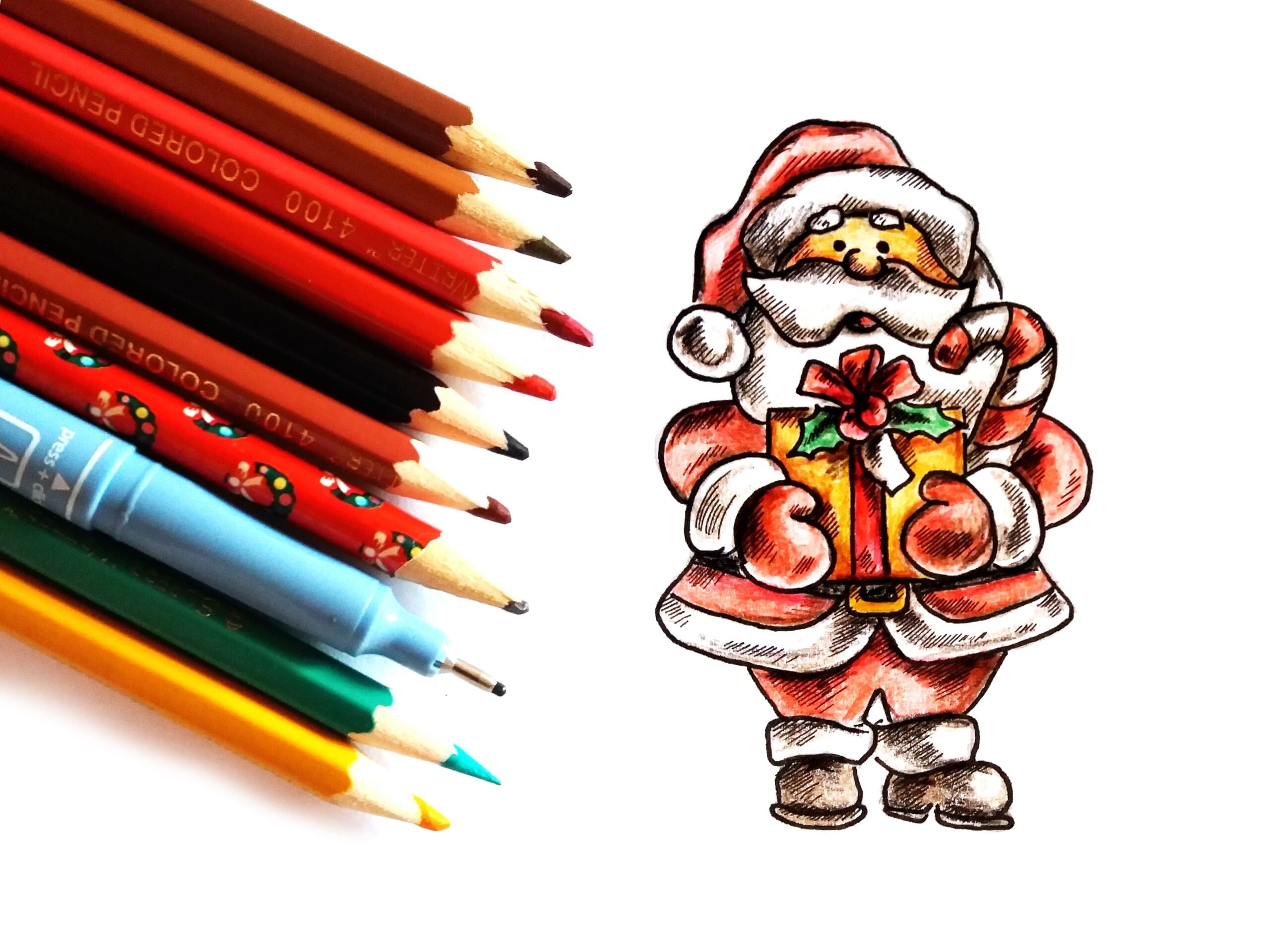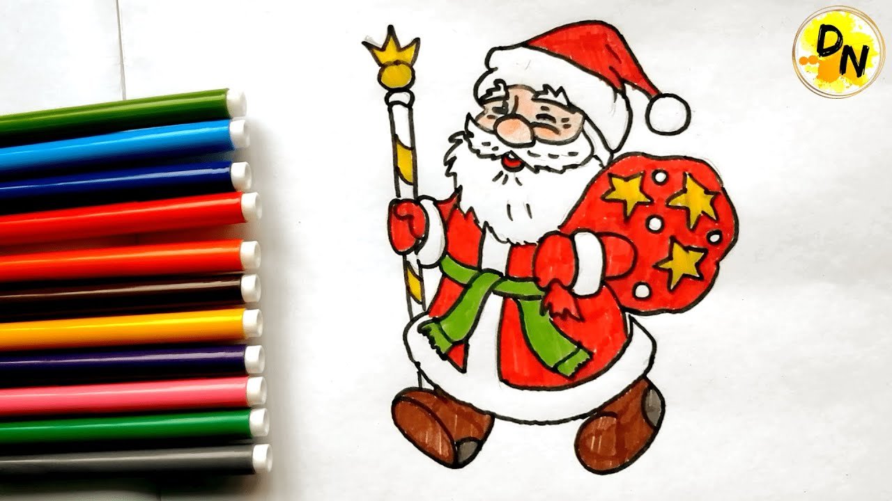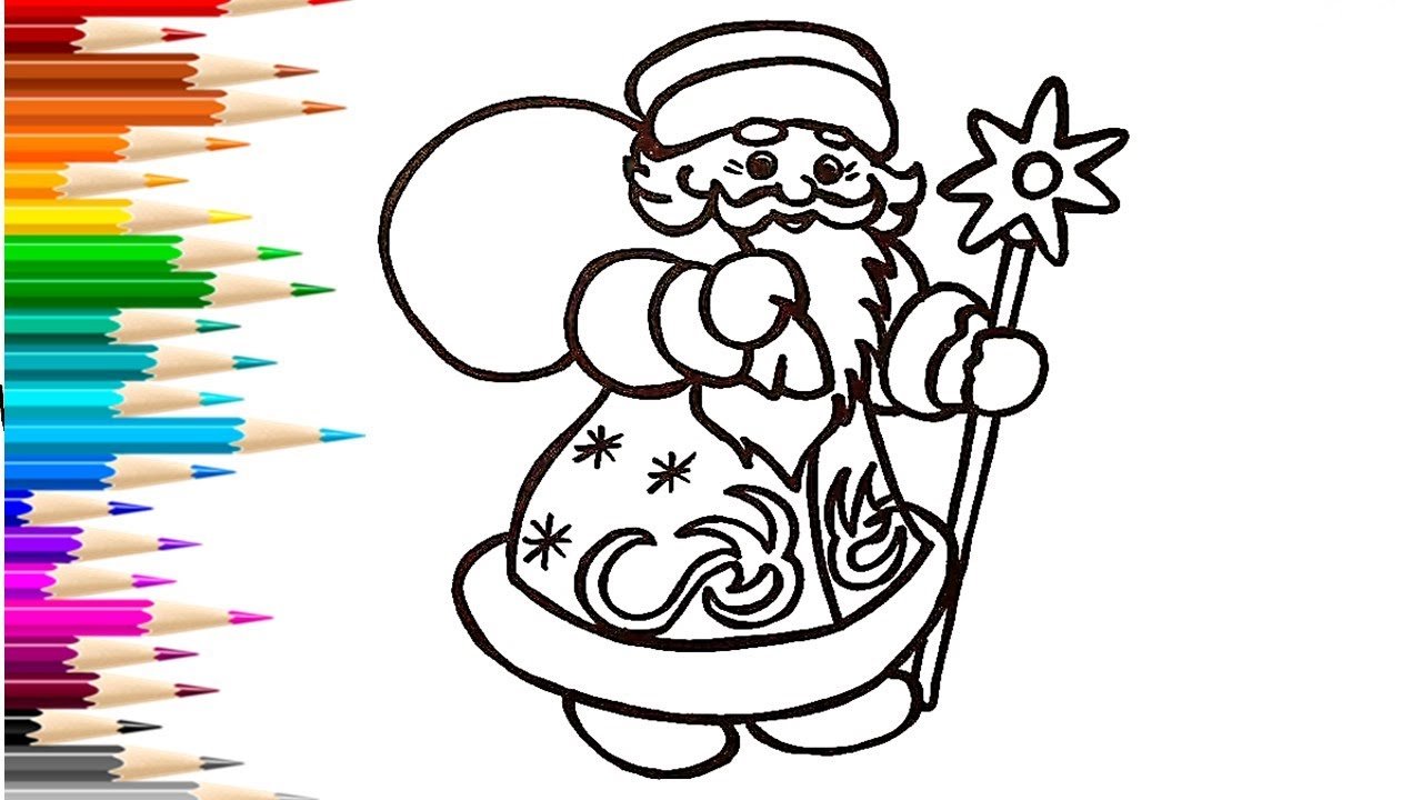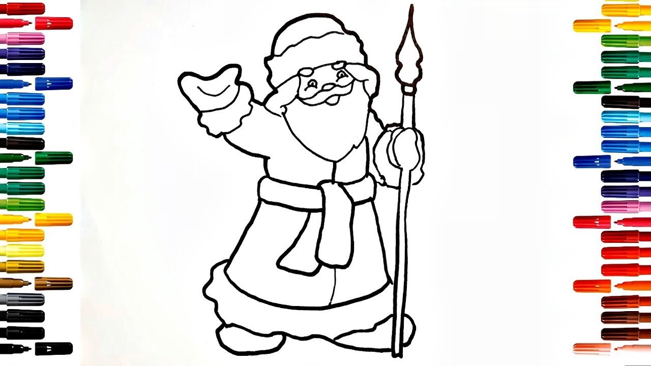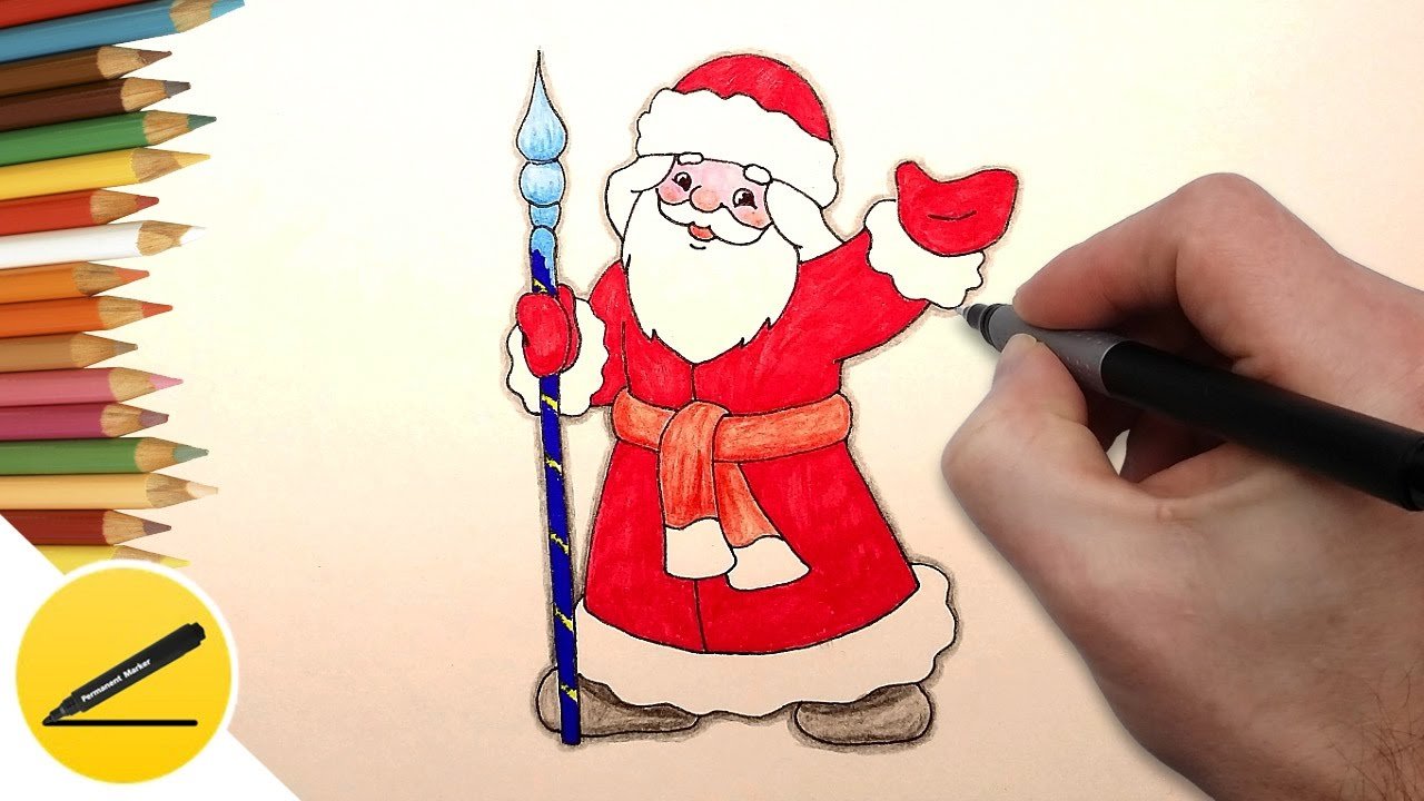 Дед Мороз рисунок карандашом цветной