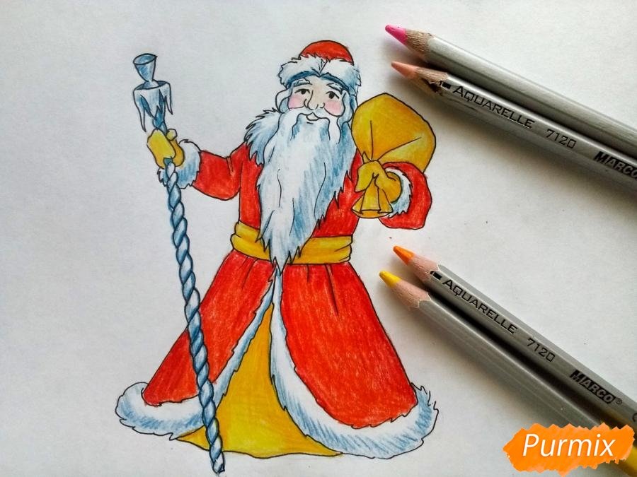 ![Дед Мороз рисунок карандашом цветной]()