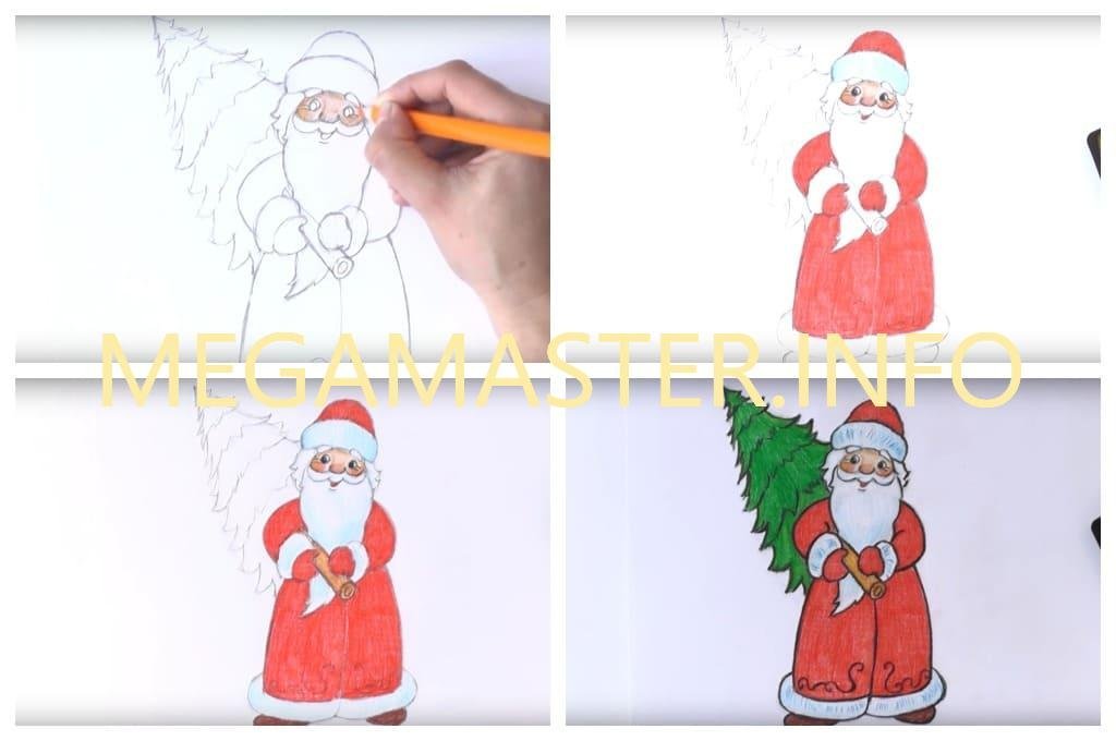 ![Как нарисовать Деда Мороза]()