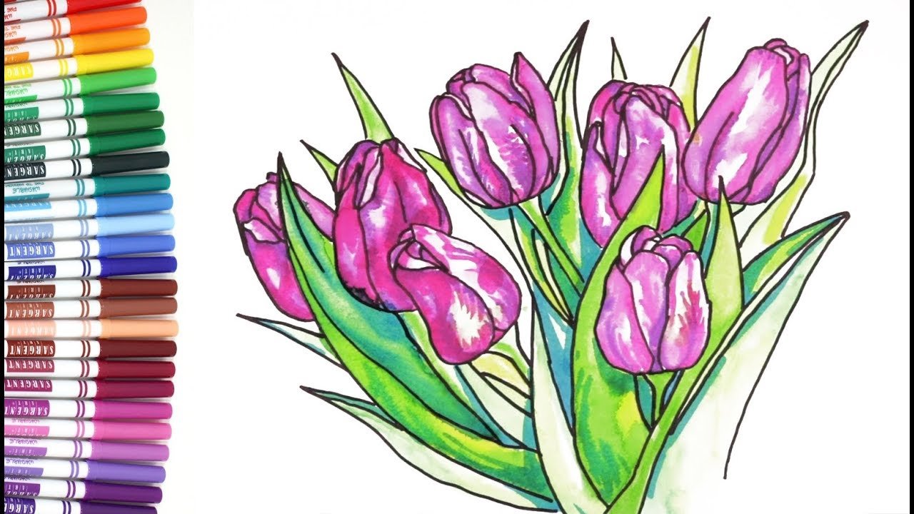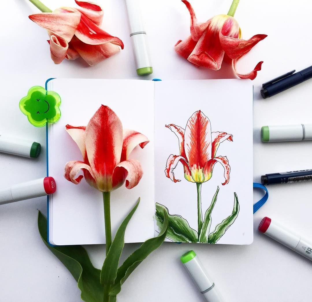 ![Скетчинг маркерами тюльпаны]()