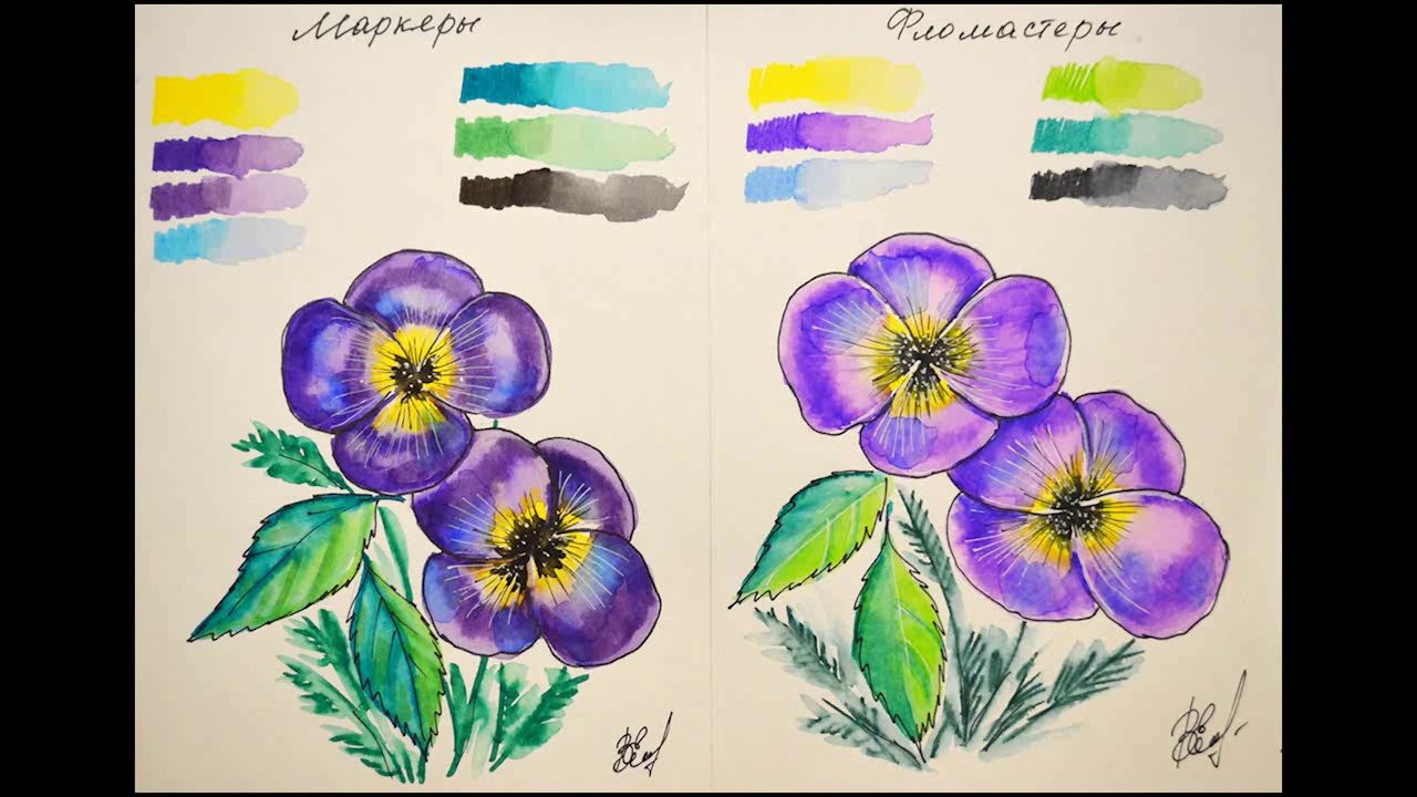 Рисование цветов фломастерами