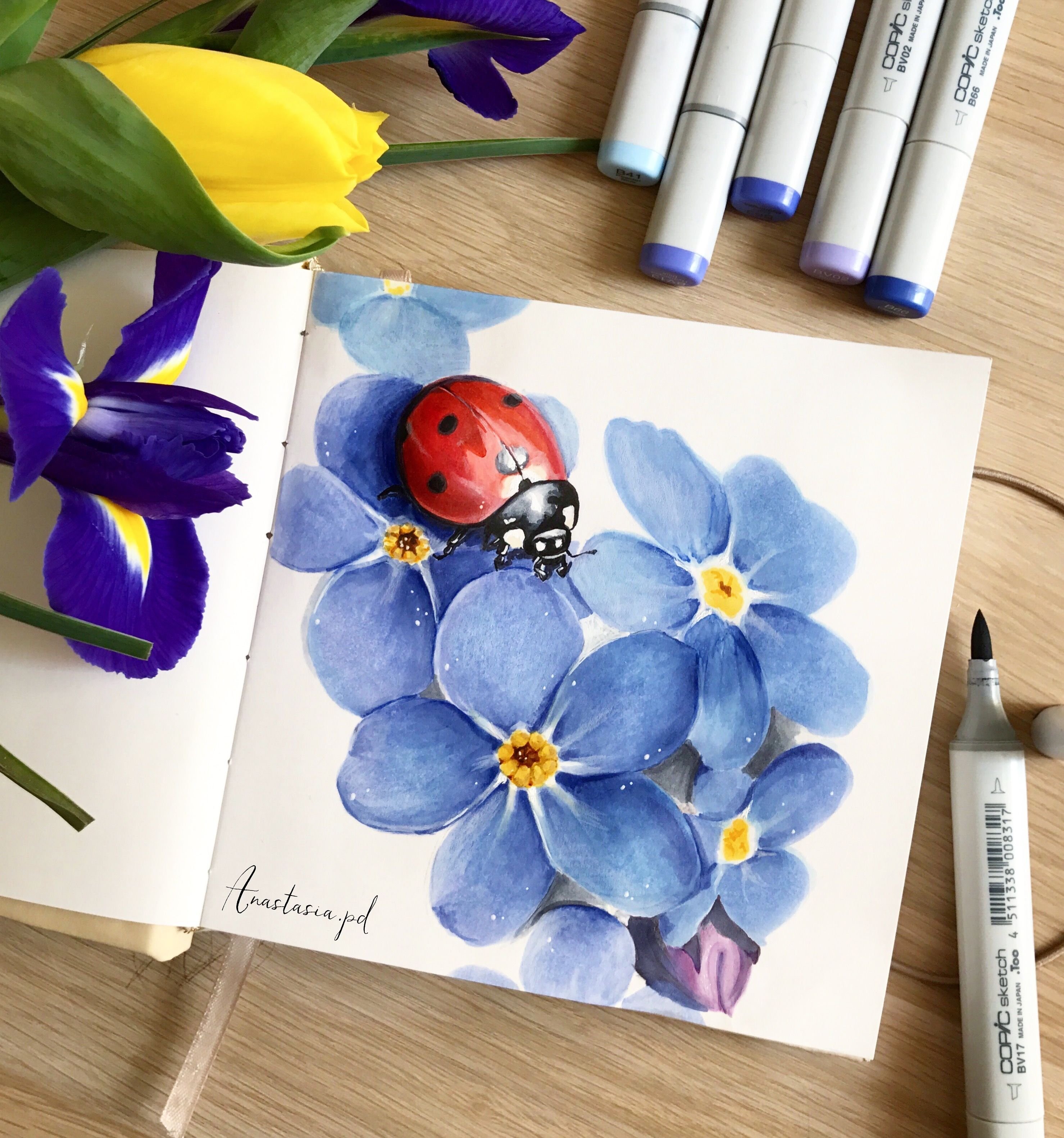 Скетчинг маркерами тюльпаны