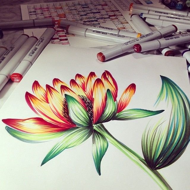![Цветы маркерами для скетчинга]()