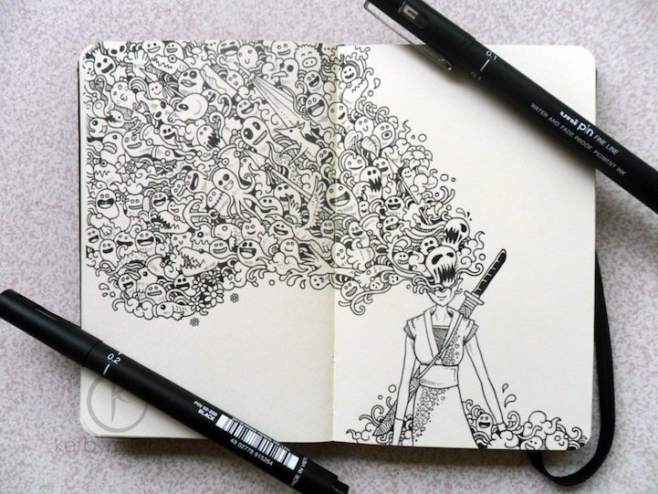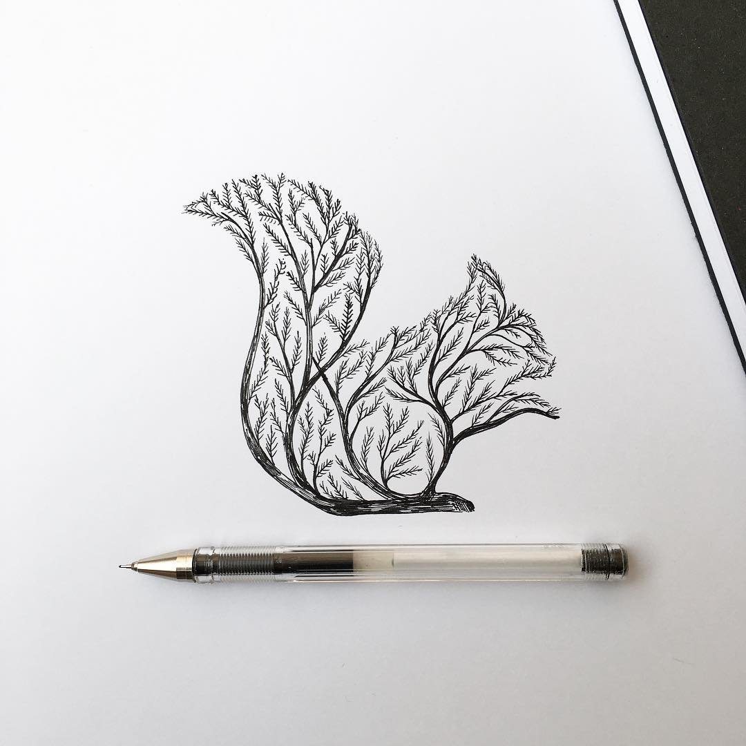 ![Рисунки чёрной гелевой ручкой]()