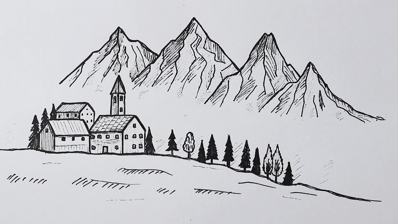 ![Рисунок ручкой пейзаж]()