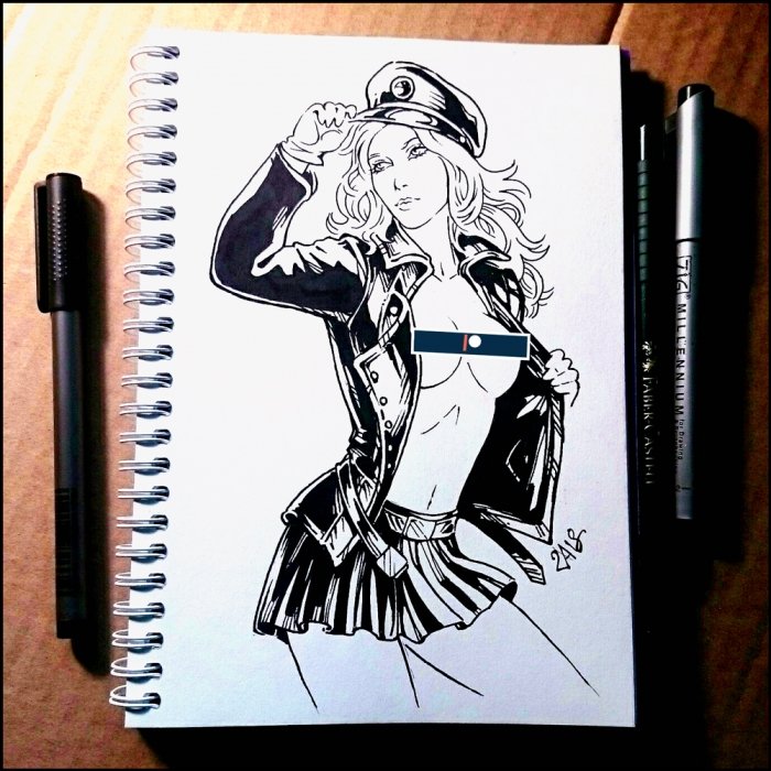 ![Рисунки гелевой ручкой девушки]()