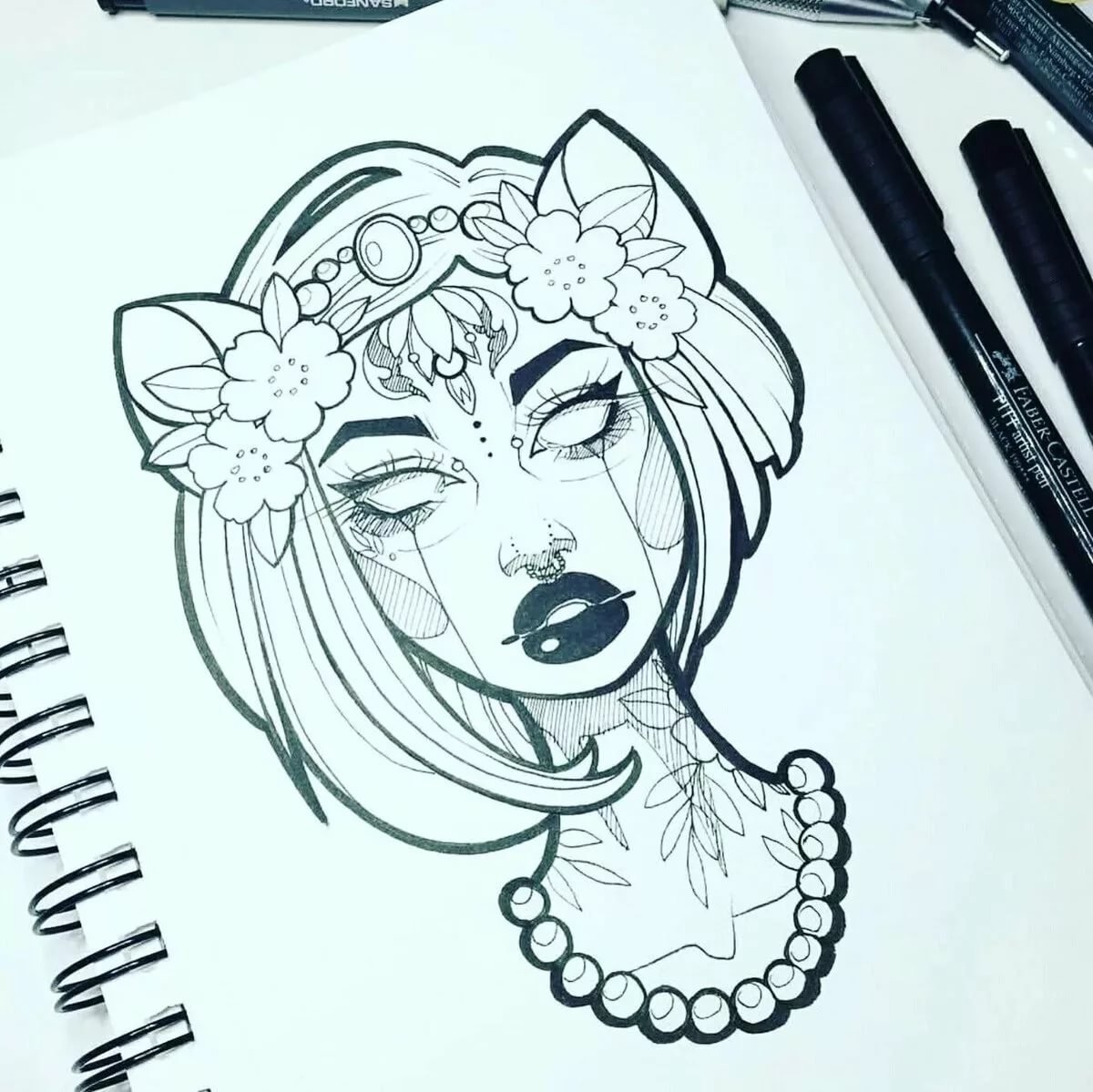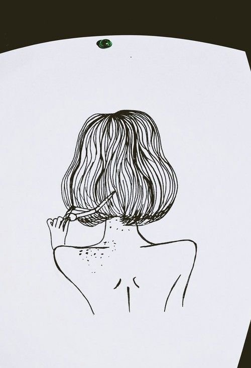 ![Рисунки чёрной ручкой девушки]()