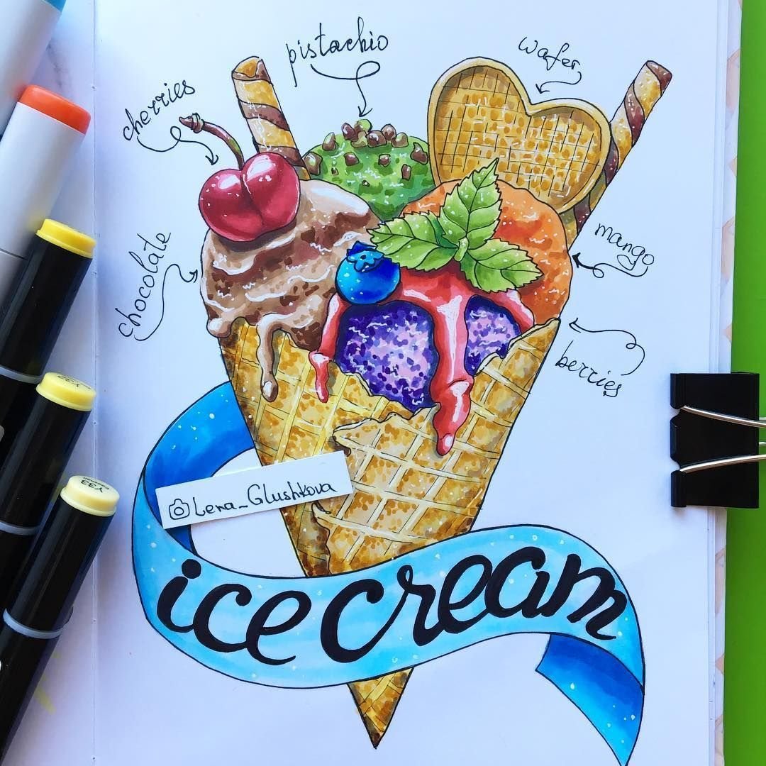 Скетчи маркерами лёгкие мороженое