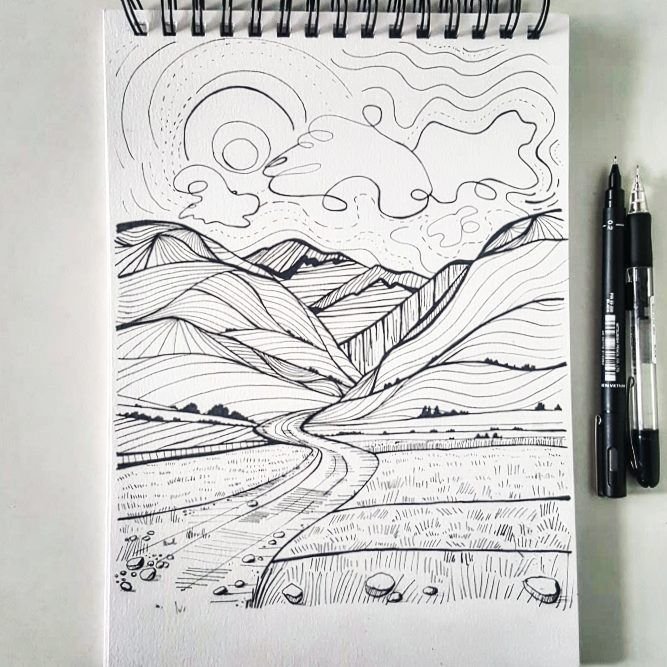 Легкие рисунки черной ручкой пейзажи - это прекрасное искусство, которое захватывает взгляды и помогает нам увидеть красоту мира в своей простоте. Ответвляющиеся дорожки, мягкие холмы и величественные горы создают гармоничное сочетание линий и теней на белом холсте. Черная ручка придаёт этим рисункам особую глубину и эффектность, подчеркивая каждую деталь и сохраняя естественность пейзажа. Без использования ярких цветов, эти работы оживают благодаря своей простоте и гармонии. Легкие рисунки черной ручкой пейзажи открывают перед нами новые миры и вдохновляют насладиться прекрасными видами природы.
