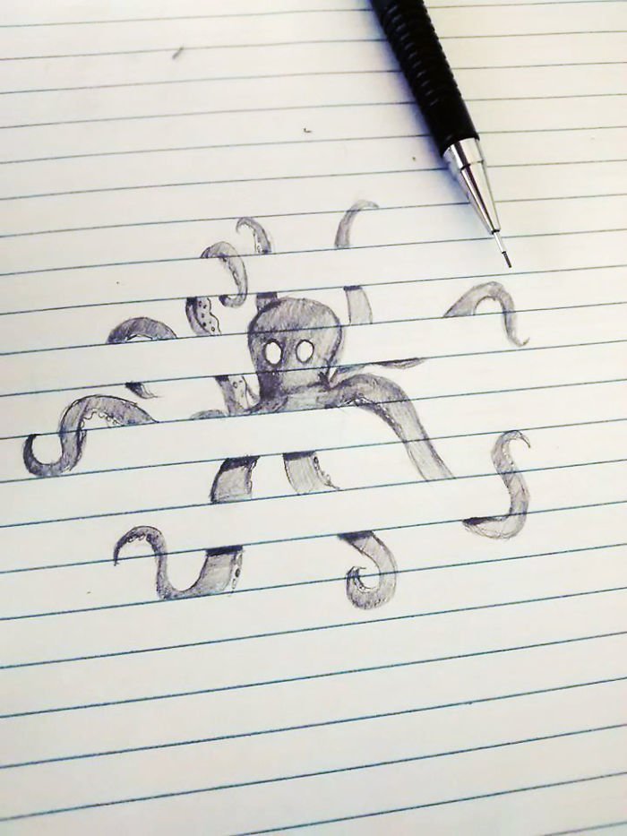 ![Рисунки в тетрадке в линейку]()