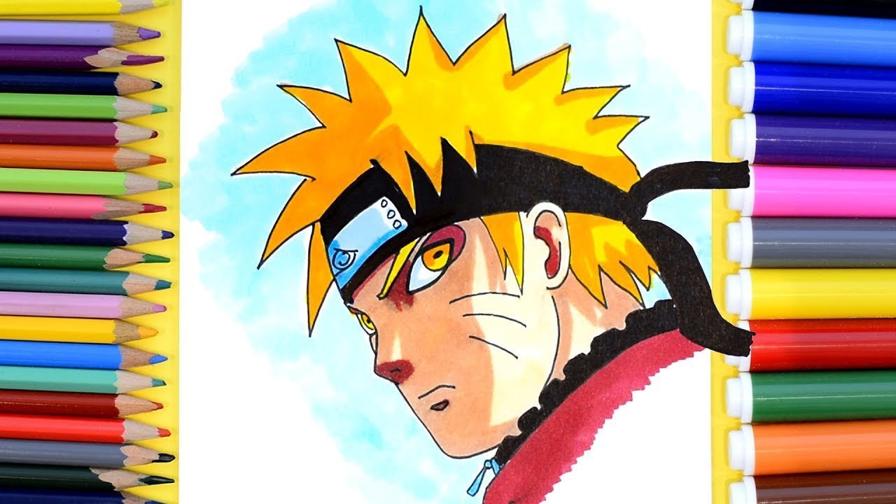![Аниме цветными карандашами Наруто]()