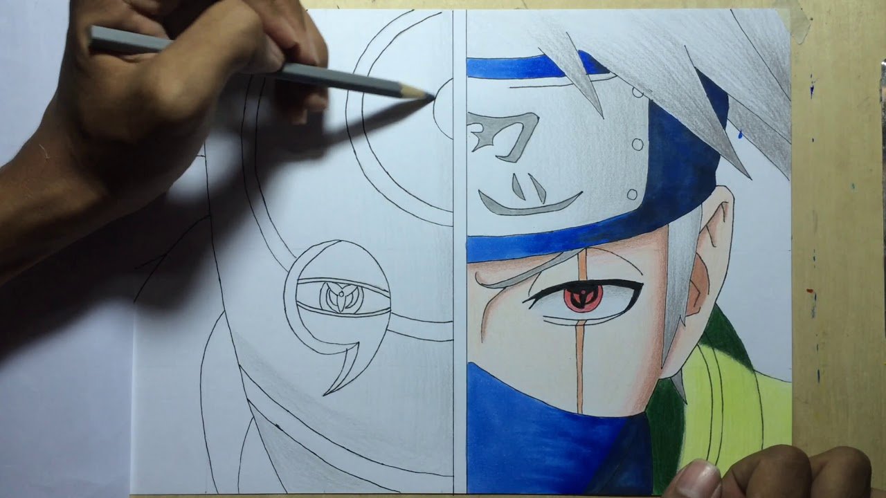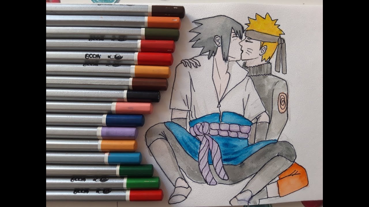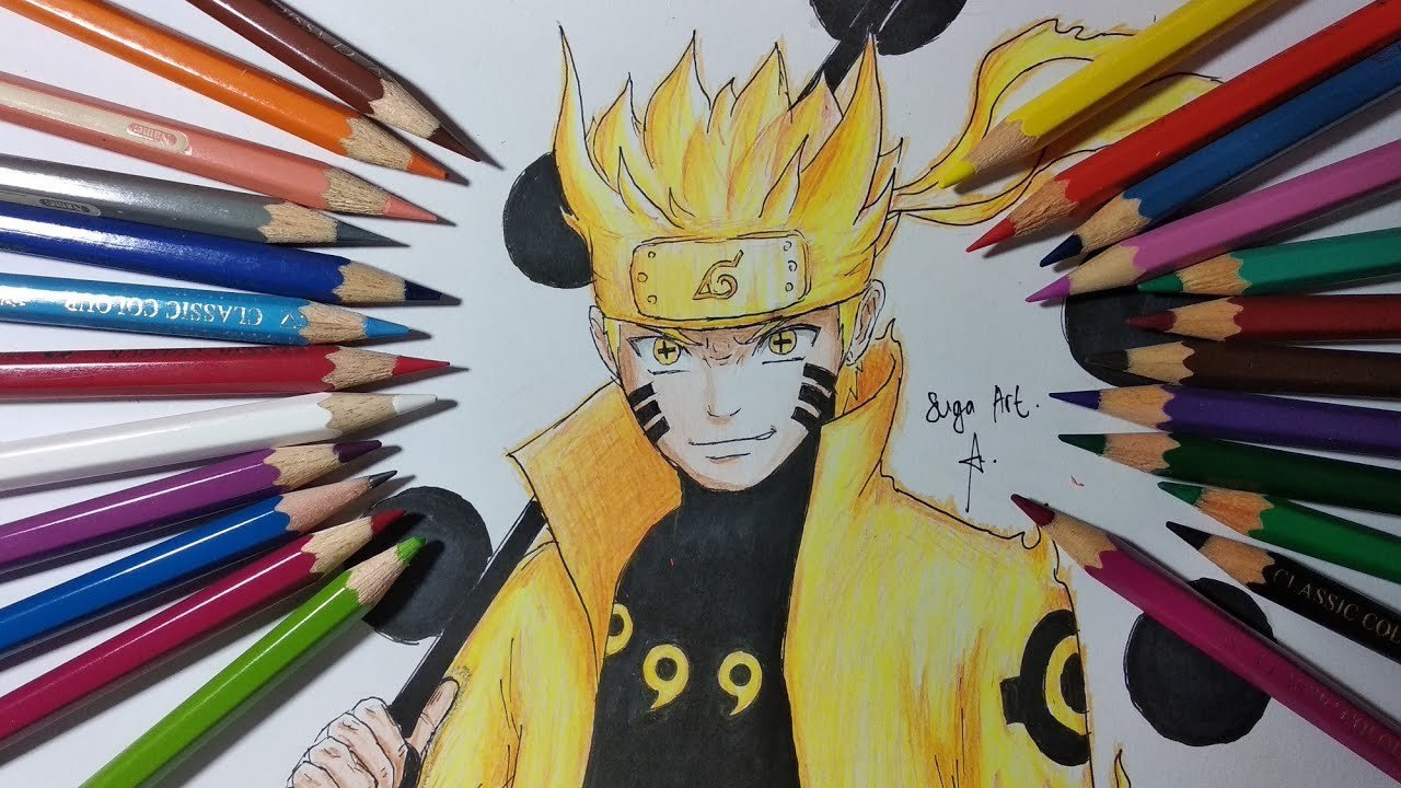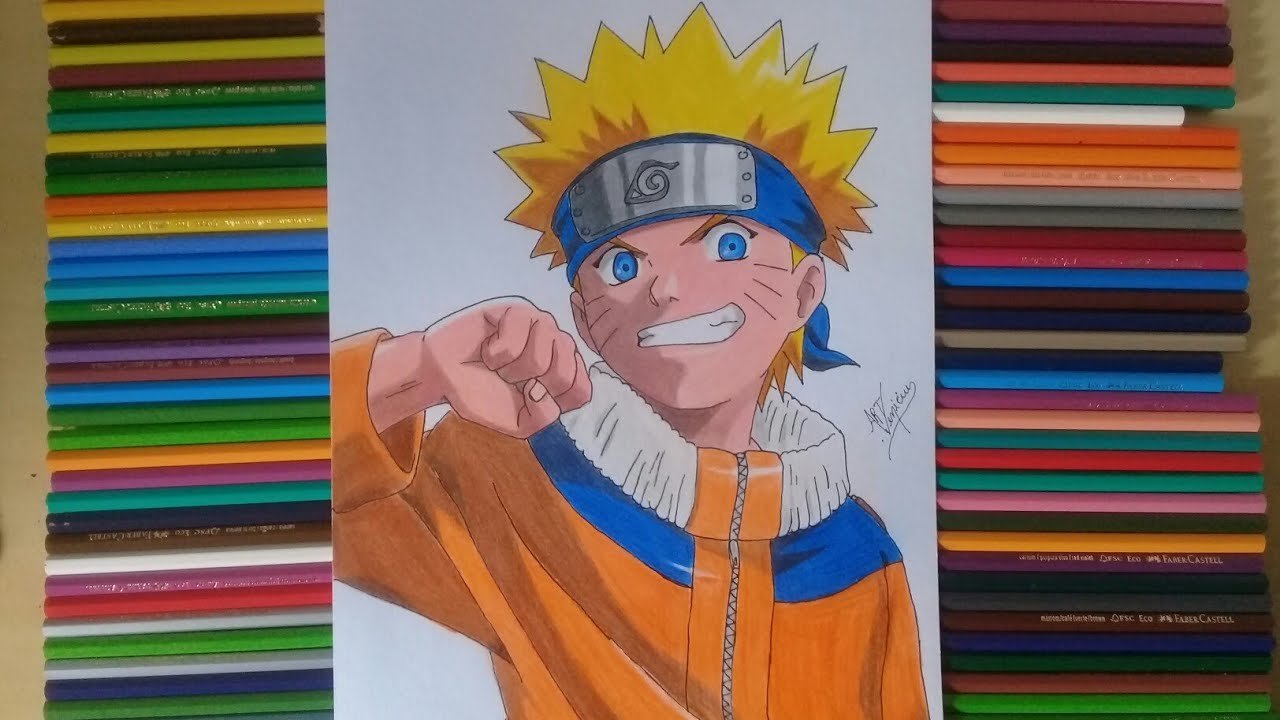 Наруто цветными карандашами