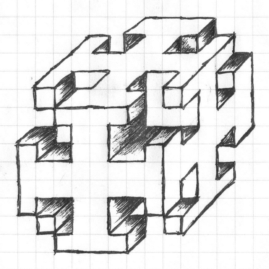 ![Рисунки по клеточкам чёрной ручкой в тетради]()