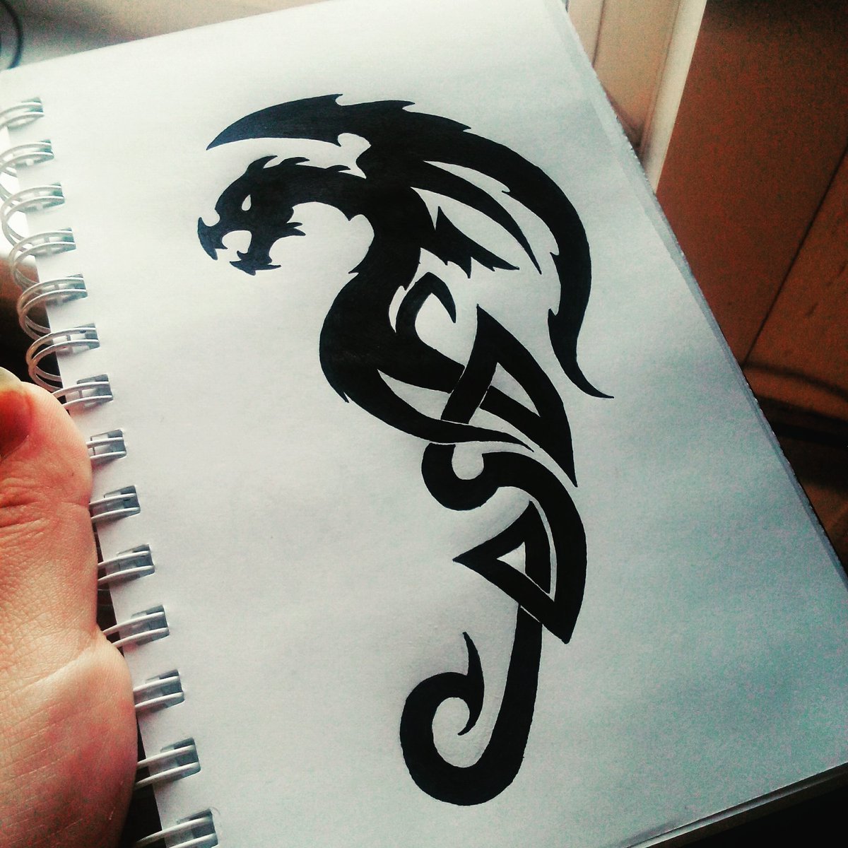 ![Дракон черной ручкой]()