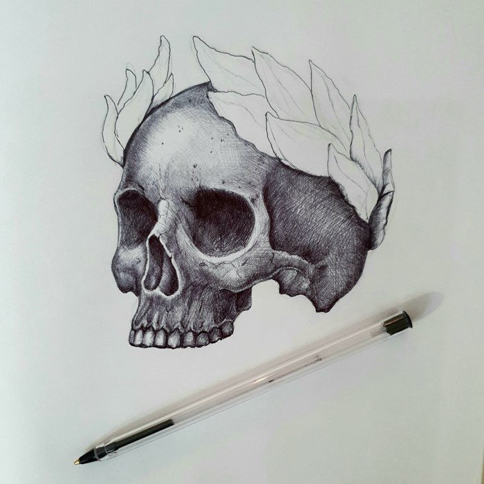 Рисунок черепа, выполненный ручкой, - это яркое и выразительное произведение искусства. Линии и штрихи, созданные рукой художника, придают изображению легкость и воздушность. Каждая деталь черепа прорисована с большой точностью и наблюдательностью, что передает его особую атмосферу. Этот рисунок станет великолепным украшением любого интерьера или источником вдохновения для тех, кто ценит эстетику и оригинальность. Он может стать отличным подарком для любителей арт-коллекций и творчества в целом. Воплощение черепа на бумаге при помощи ручки создает впечатление легкости и хрупкости, открывает новые грани его символического значения и позволяет каждому зрителю воспринять его по-своему.