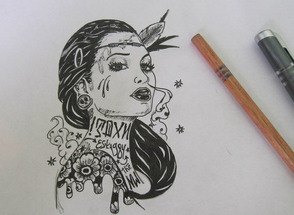 ![Рисунки чёрной ручкой]()