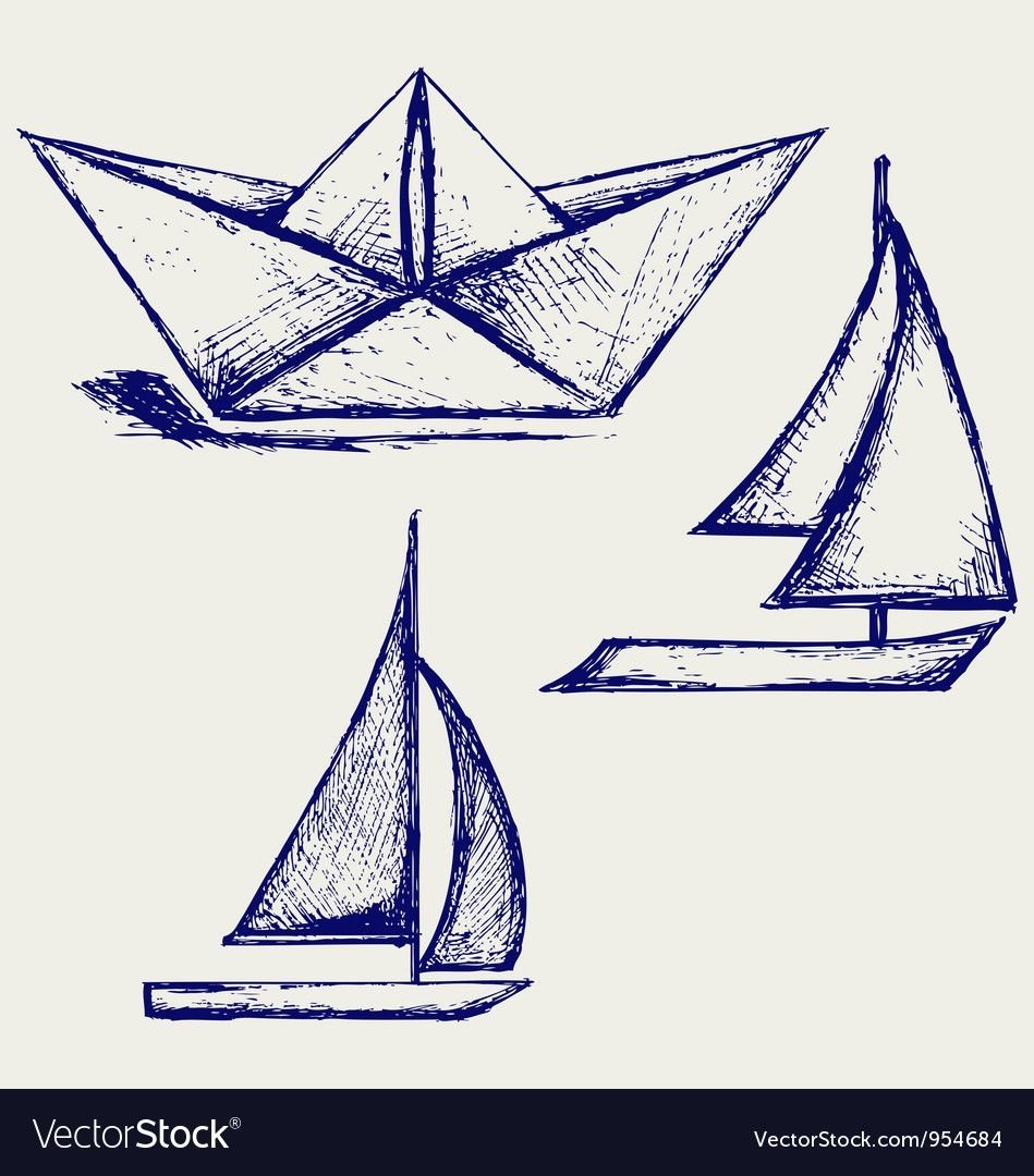 ![Бумажный кораблик рисунок]()