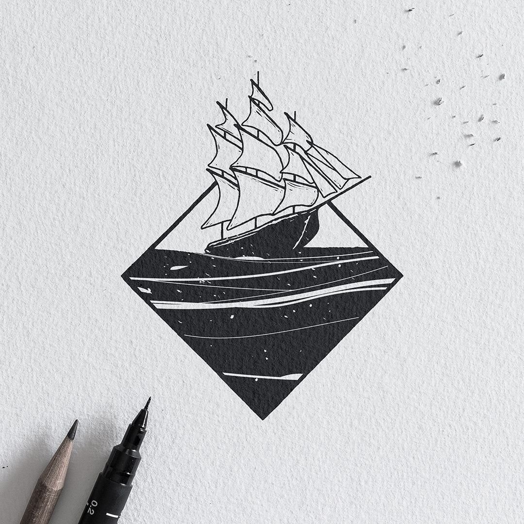 Тату корабль Минимализм