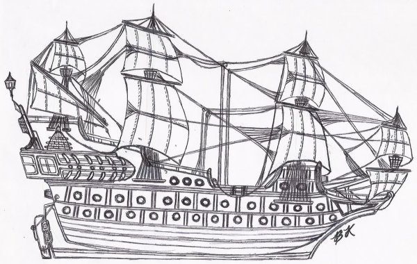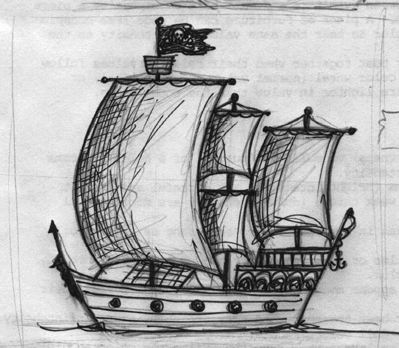 ![Пиратский корабль карандашом]()