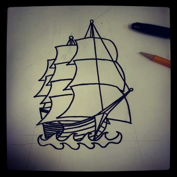 ![Кораблик тату эскиз]()