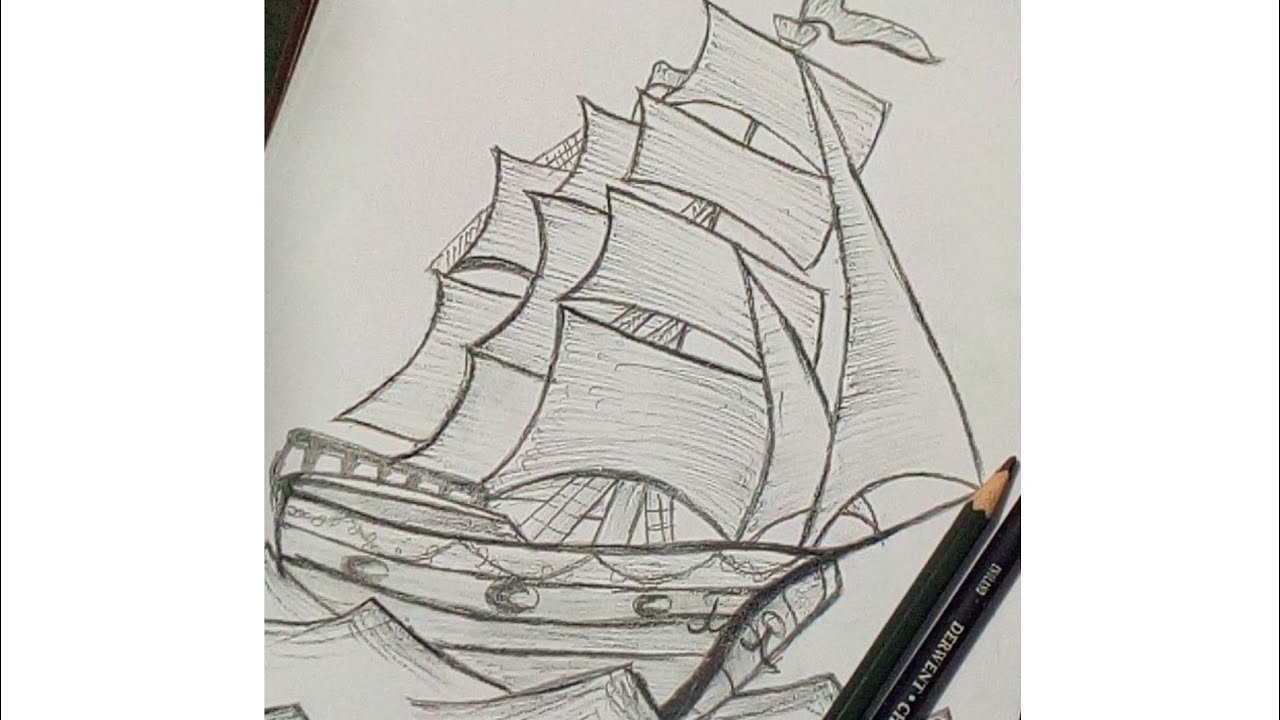 ![Затонувший корабль карандашом]()