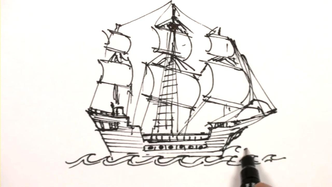 ![Корабль карандашом]()