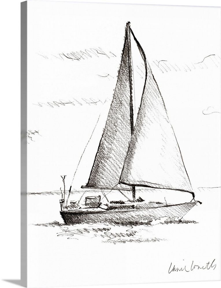 Парусная яхта карандашом