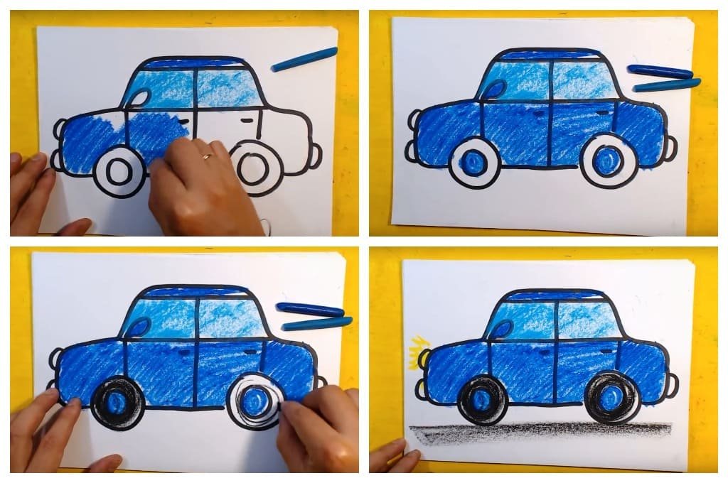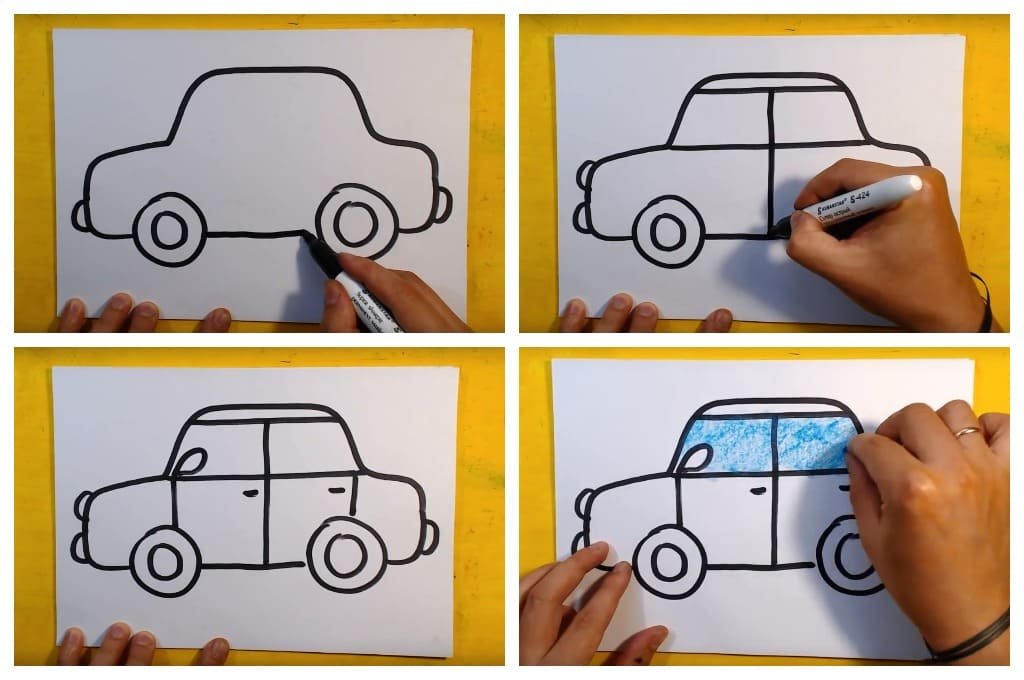 Рисование машины пошагово для детей