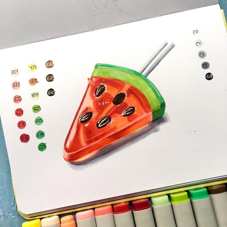 Рисование маркерами еда
